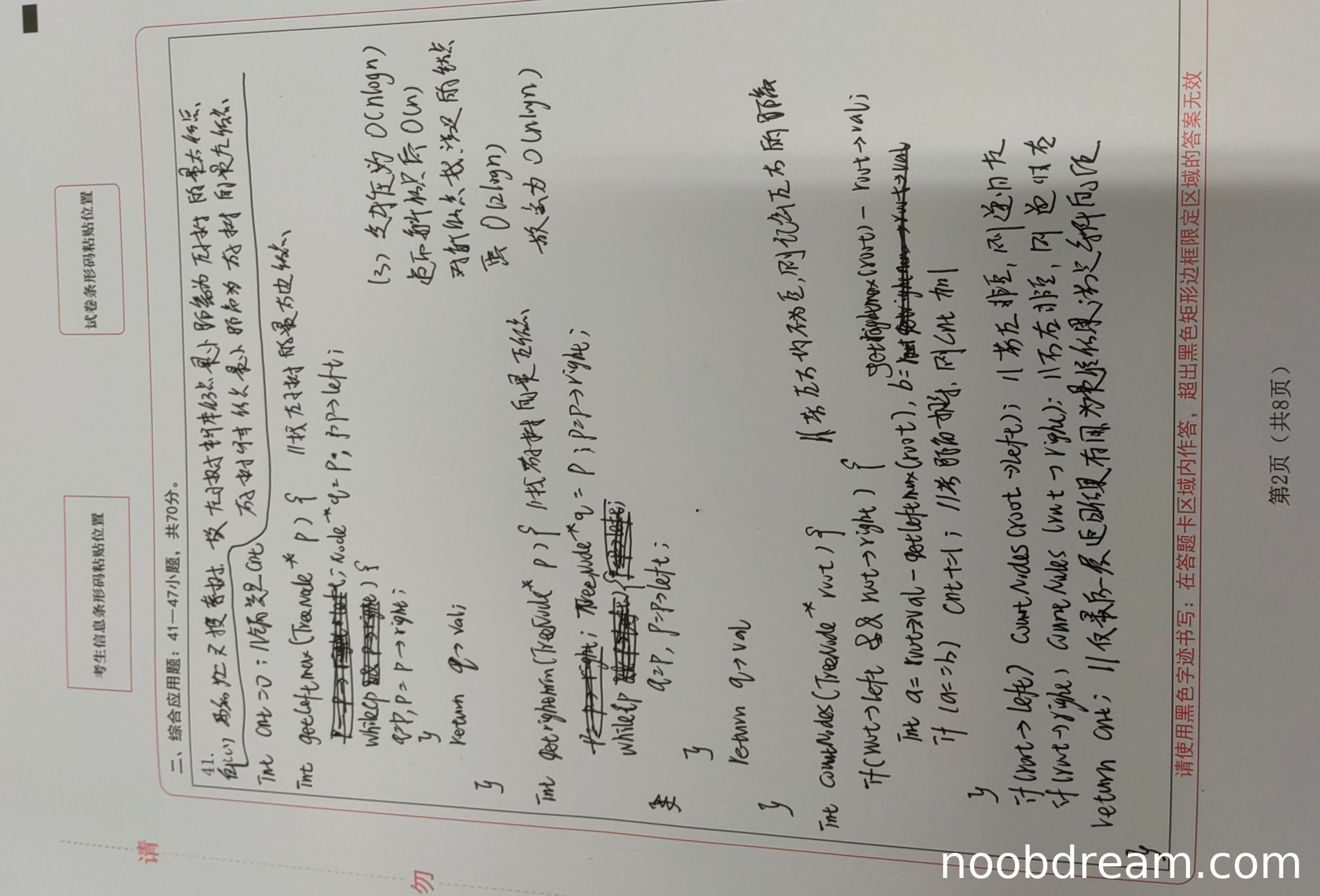 得0分。学生未分析算法时间复杂度,且提供的代码与题目无关,无法推导出正确的时间复杂度。