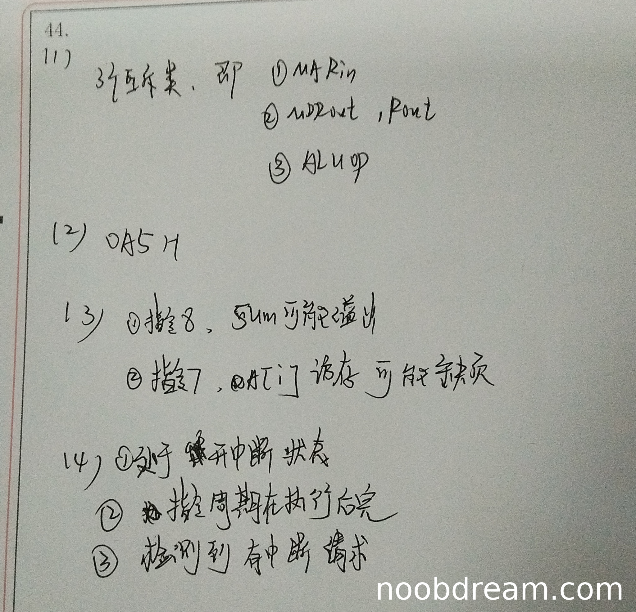 学生回答划分出3个互斥类,与标准答案一致。互斥类划分正确:MARin独立为一类,MDRout和Rout(学生误写为Pout,但根据上下文判断为识别错误,实际应为Rout)为第二类,ALUop为第三类。互斥类数量正确,但未说明划分依据。根据标准答案,划分依据应占1分,互斥类数量占1分。因此扣1分,得1分。