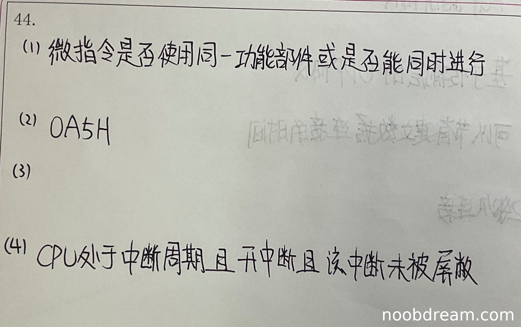 学生回答“CPU处于中断周期且开中断且该中断未被屏蔽”,与标准答案中“CPU处于开中断状态”和“该中断请求未被屏蔽”两点一致,但缺少“当前addl指令执行完成后才可以进行响应”这一关键条件。因此扣1分。得1分。
