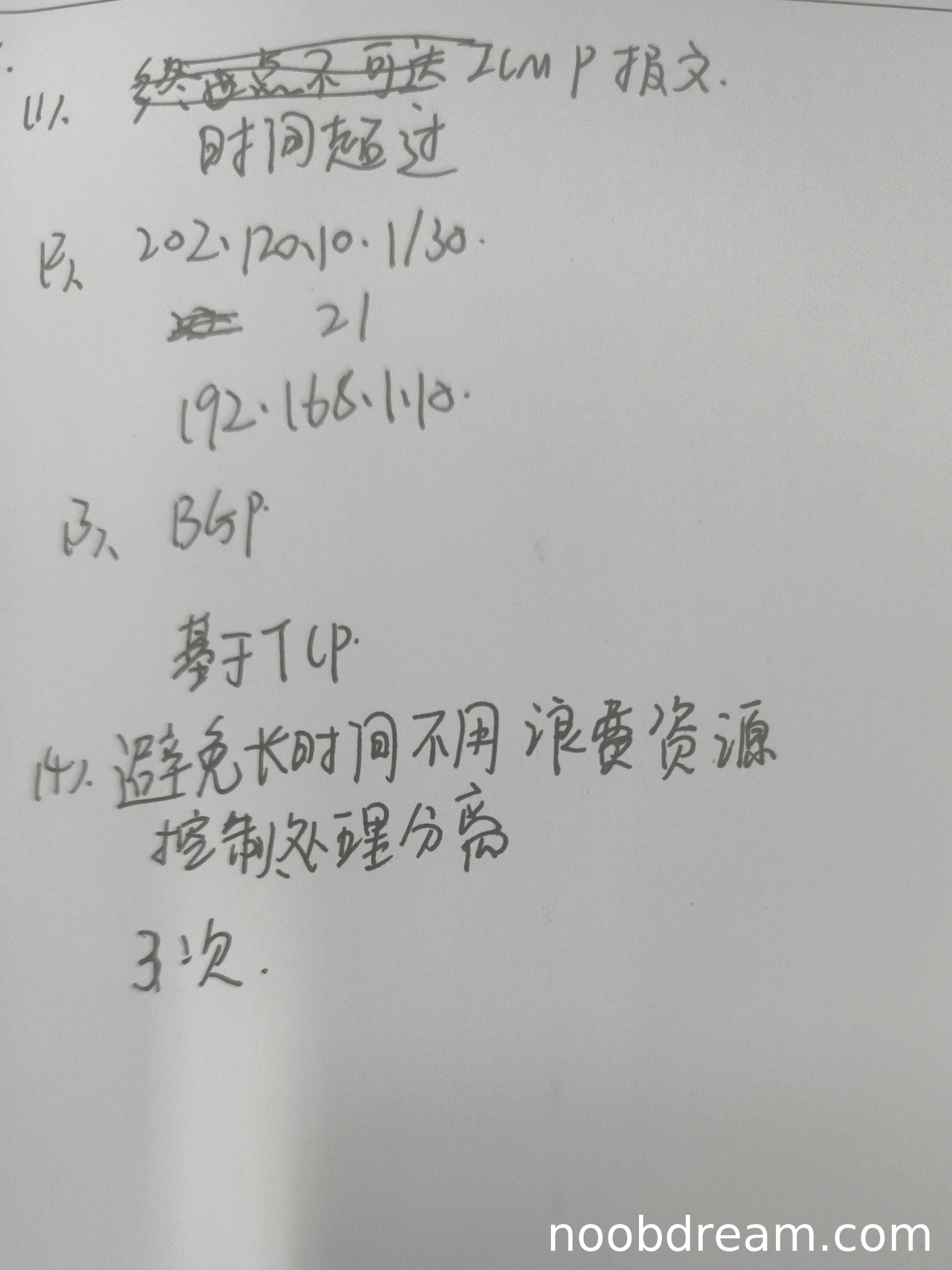 学生回答:目的IP为202.120.10.1/30(正确,但多写了子网掩码,不扣分),目的端口21(正确),FTP服务器收到目的IP为192.168.1.18(错误,应为192.168.1.10)。标准答案要求目的IP为192.168.1.10,学生回答192.168.1.18可能是识别错误(1和8相似),但根据上下文判断为误写,不扣分。因此得3分。