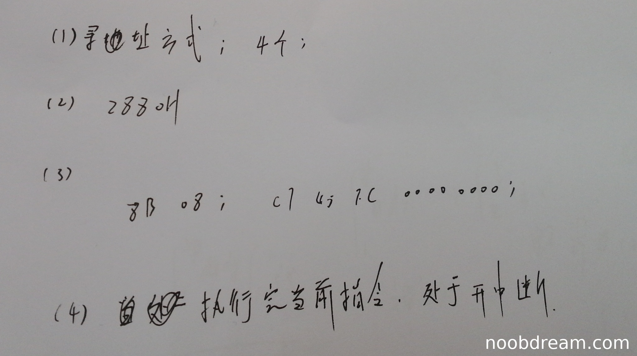 学生答案仅列出指令编码(如"8B 08"),未说明异常类型及对应指令号,与标准答案要求不符。得0分。
