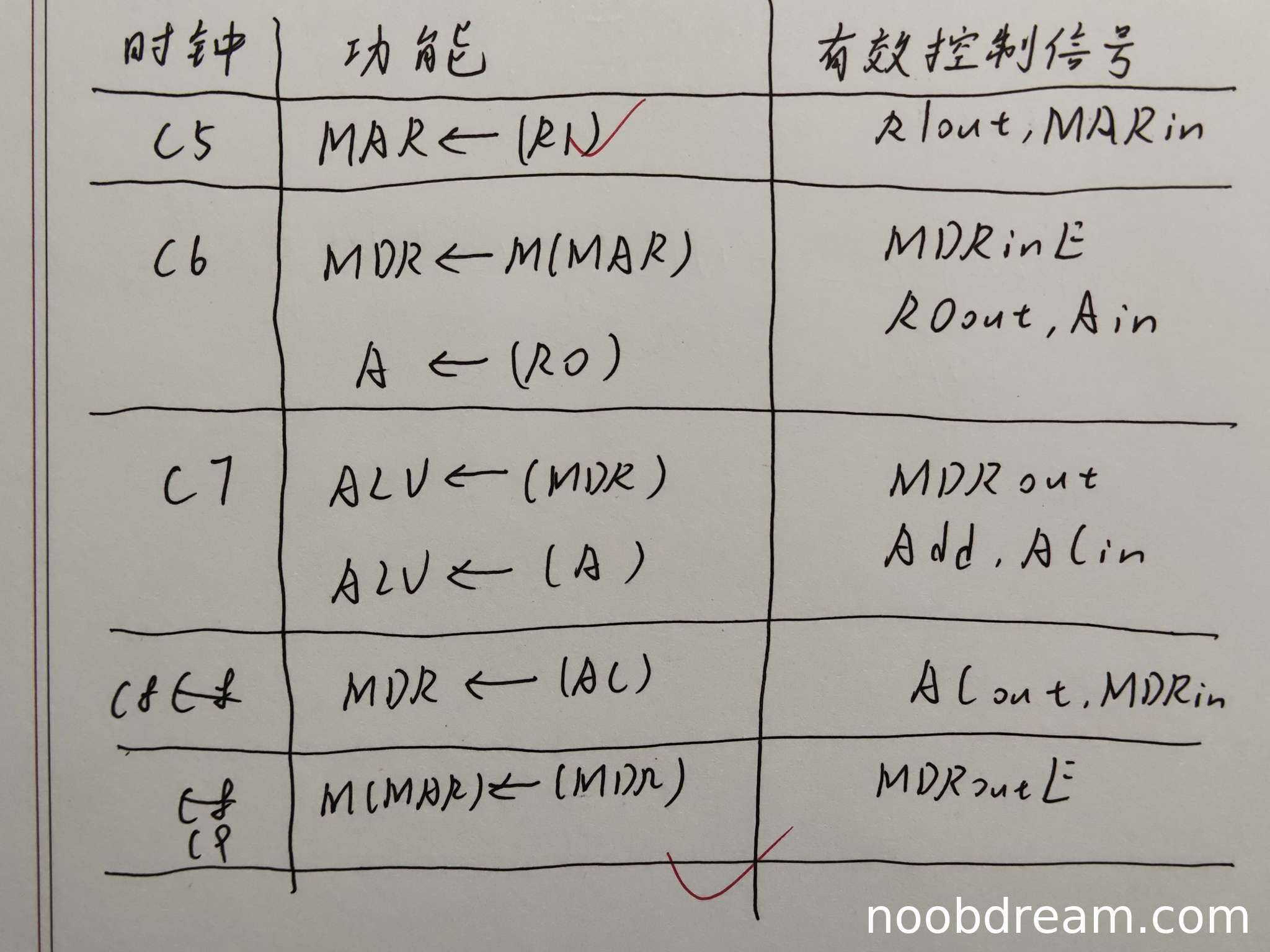 - C8节拍:功能"MDR←(AC)"和控制信号"ACout, MDRin"正确。