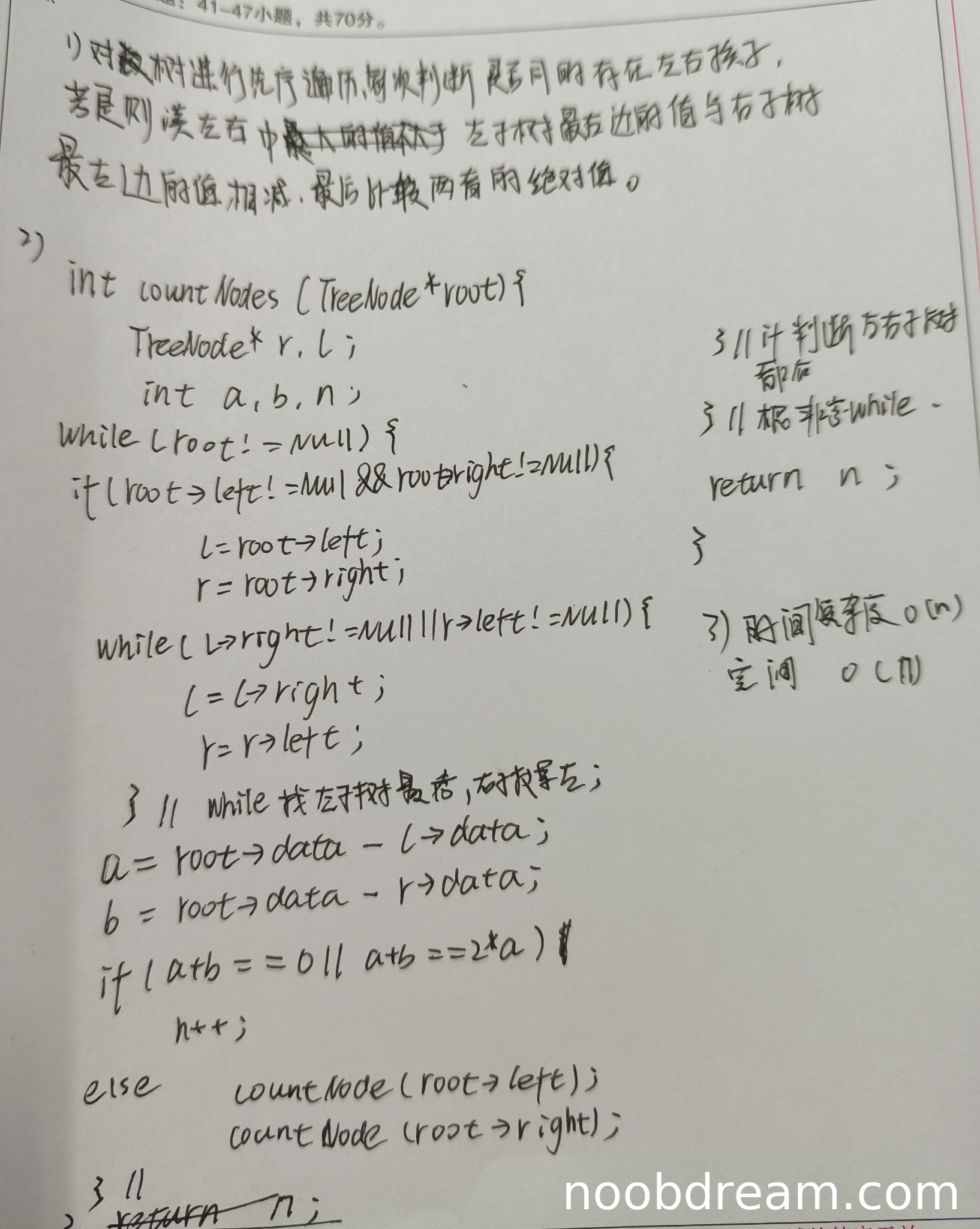 4. 递归调用错误:在条件分支中错误地递归调用`countNodes`(应遍历所有结点,而非仅当条件不满足时递归)。