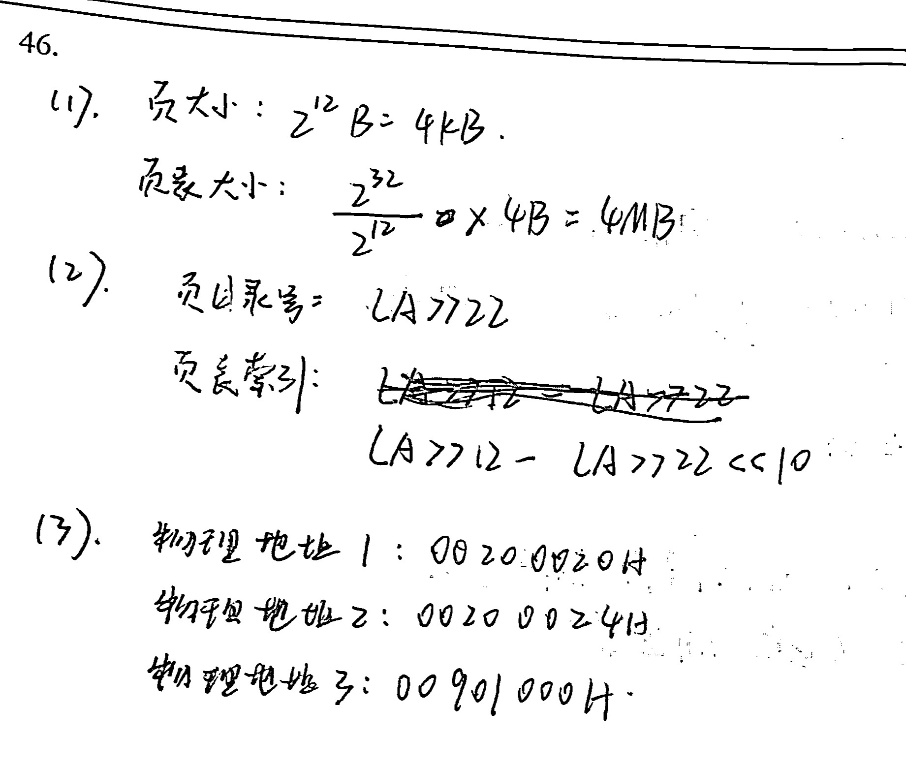 学生答案正确计算了页大小(4KB)和页表最大占用(4MB),与标准答案一致。得3分。
