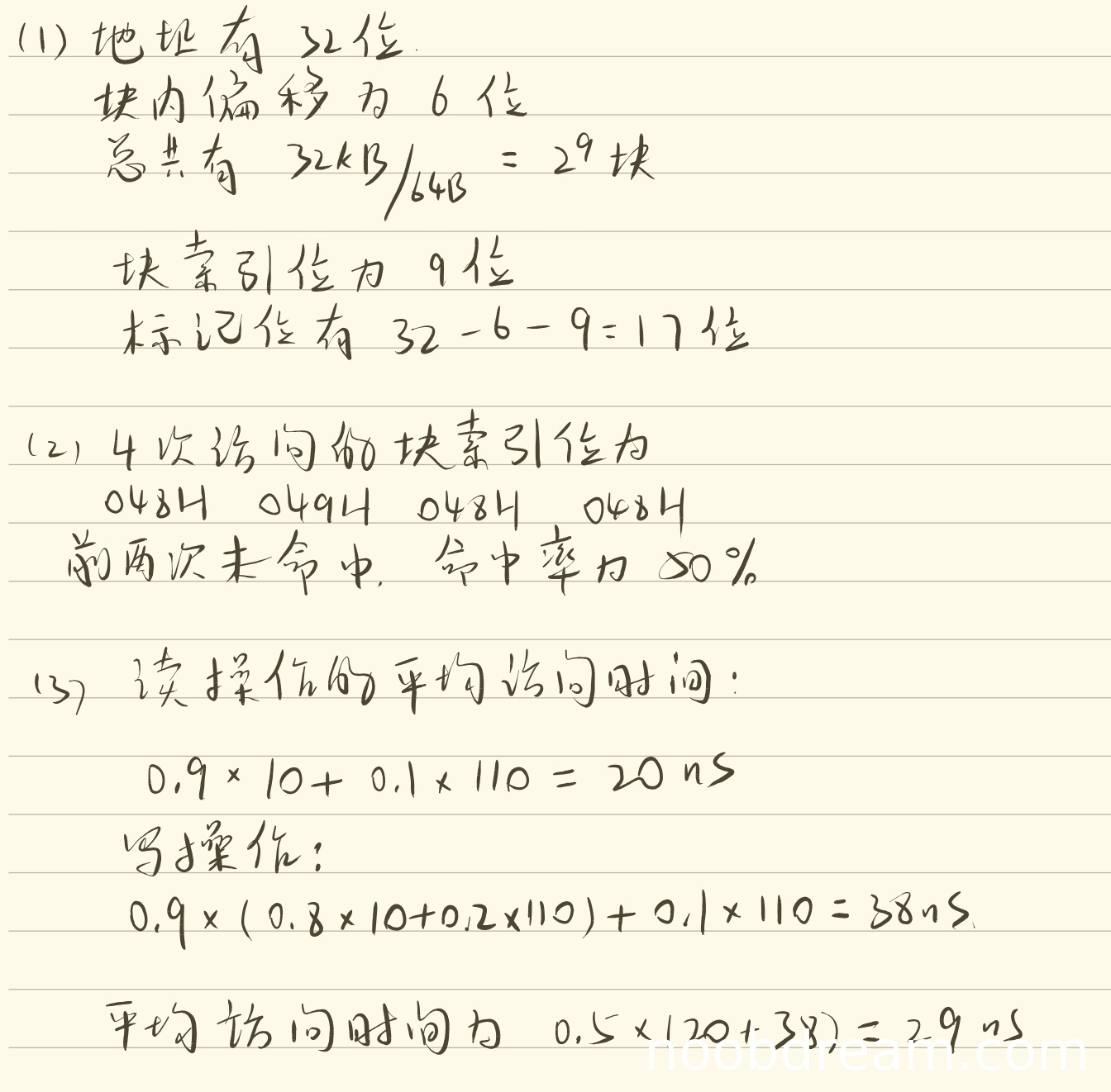 此错误属于逻辑错误,扣2分。最终平均时间计算为29ns(错误),但基于读操作正确部分,得1分。因此(3)部分得2分。