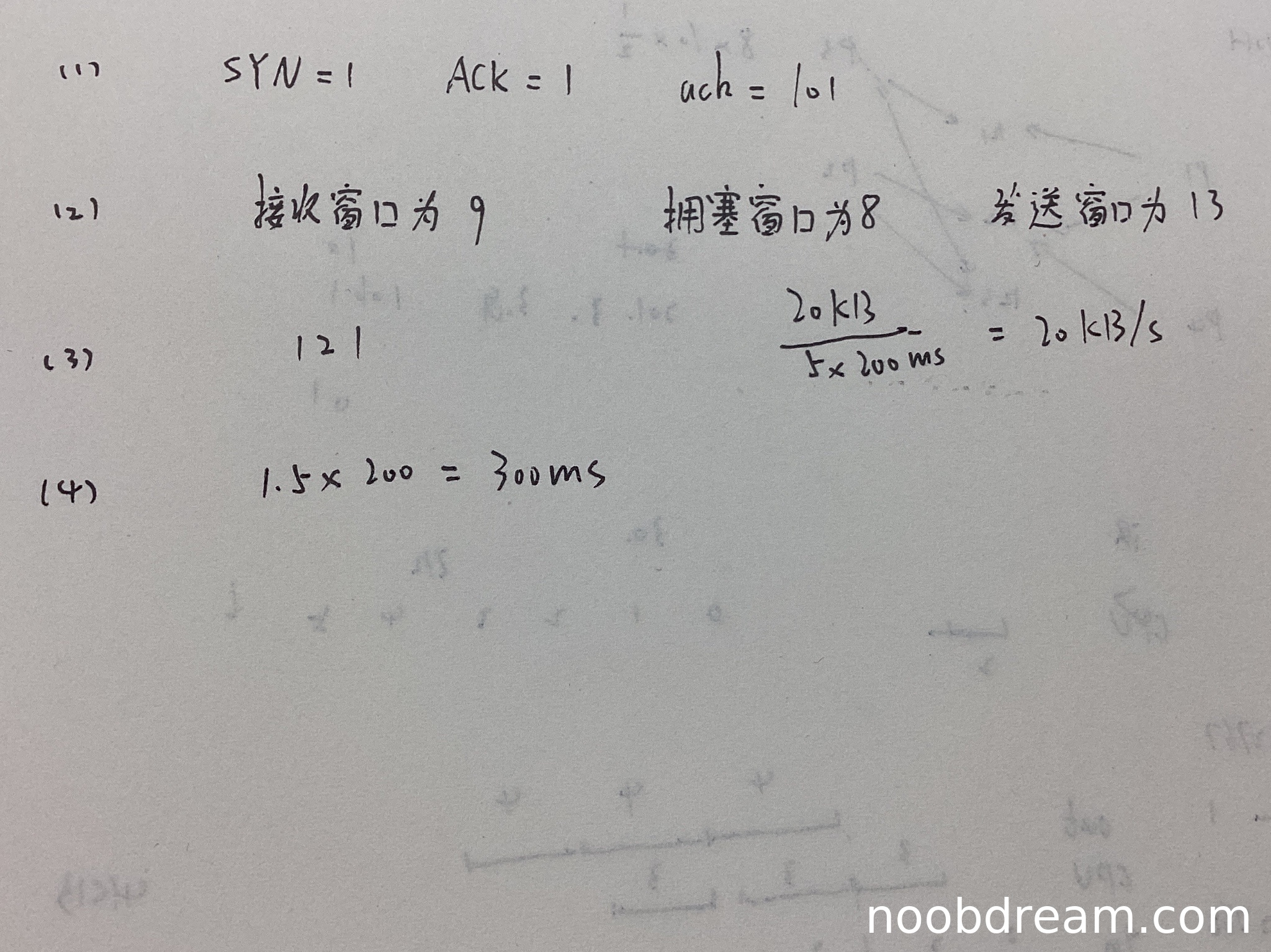 学生答案:SYN=1, ACK=1, 确认序号=101。与标准答案一致。其中"ach"应为"确认序号",但根据上下文可判断为误写,不扣分。因此得3分。