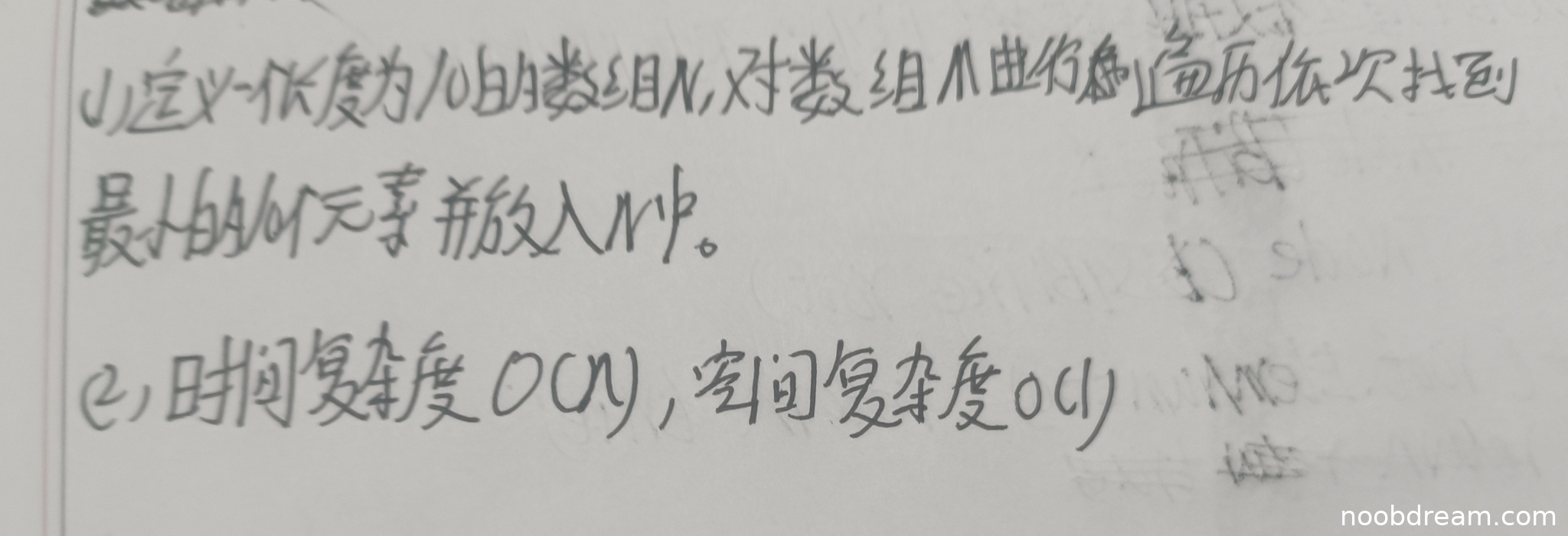 学生答案描述过于简单,仅提到"定义一个长度为10的数组N,对数组A进行遍历依次找到最小的10个元素并放入N中",没有具体说明如何实现这一过程。标准答案提供了两种具体算法(插入排序思想和大根堆思想),并详细描述了算法步骤。学生答案缺乏具体的算法思想描述,无法判断其算法是否高效,只能给基础分。得3分。