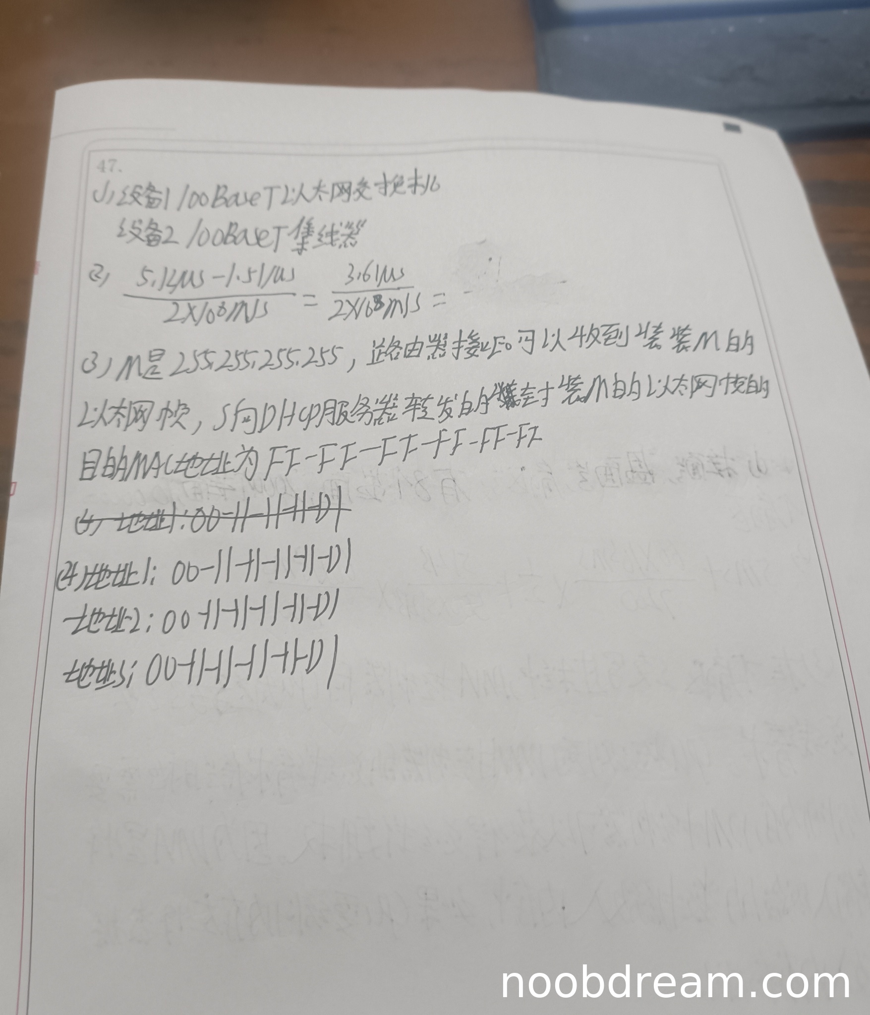 学生作答中四个地址全部错误(均为00-11-11-11-11-D1或01),与标准答案(地址1: E1, 地址2: C1, 地址3: D1)不符,逻辑错误。得0分。