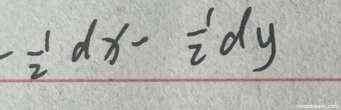 学生两次识别结果均为 \(-\frac{1}{2}dx - \frac{1}{2}dy\),该结果与标准答案 \(-\frac{1}{2}(dx + dy)\) 完全等价。根据隐函数求全微分的正确方法,在点 \((\frac{1}{2}, \frac{1}{2})\) 处计算结果正确,表达形式虽与标准答案略有差异(分配律展开),但数学含义一致。因此本题得满分4分。
