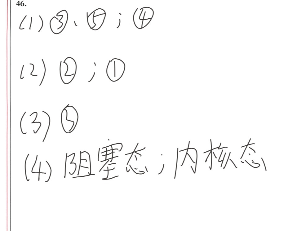 学生答案第二问为“①”,标准答案为“①将进程P插入就绪队列”,答案正确,得1分。