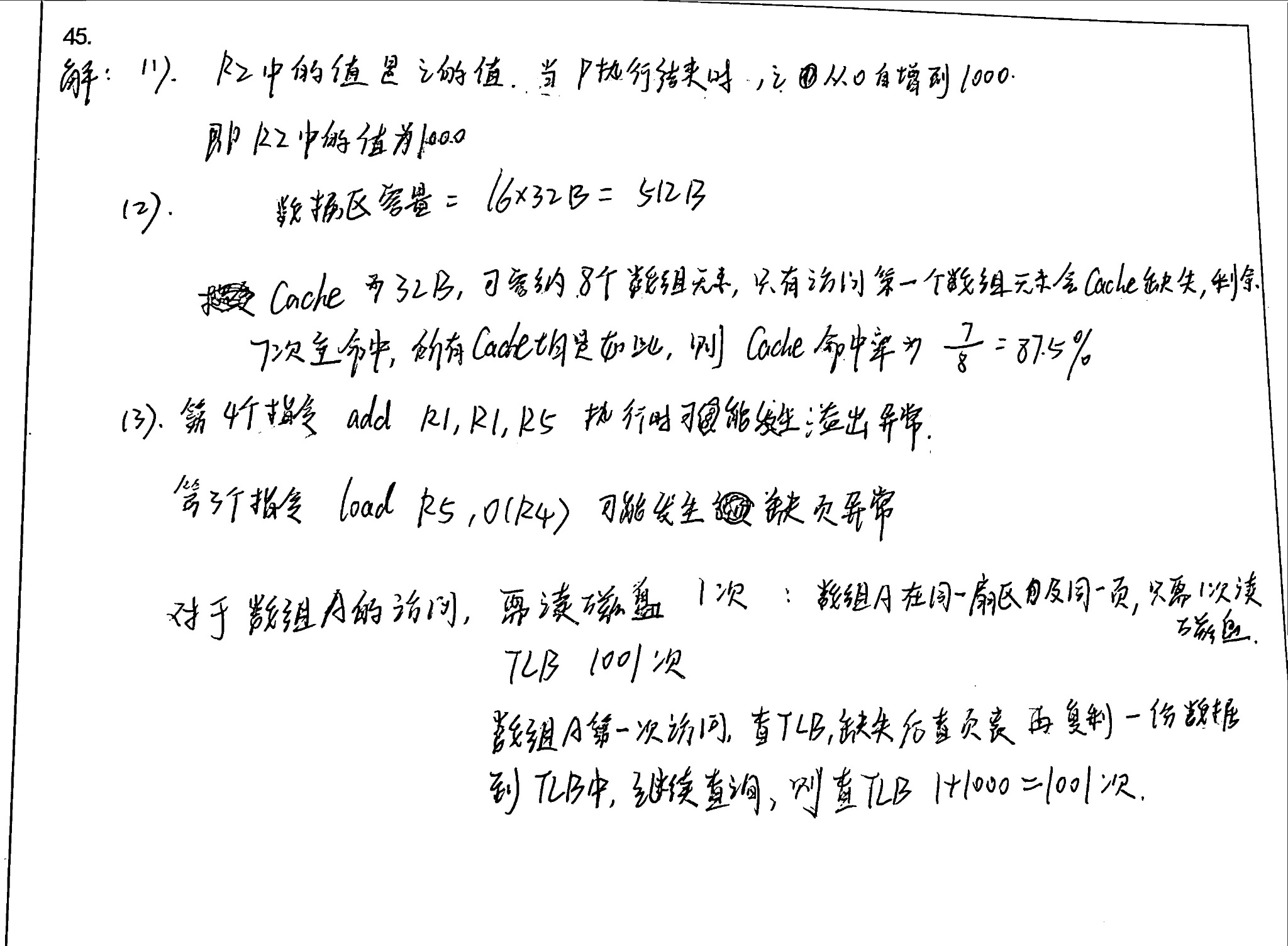 溢出异常分析正确(指令4),得1分;缺页异常分析正确(指令3),得1分;读磁盘次数正确(1次),得2分;TLB访问次数正确(1001次),得2分。本小题总得6分。