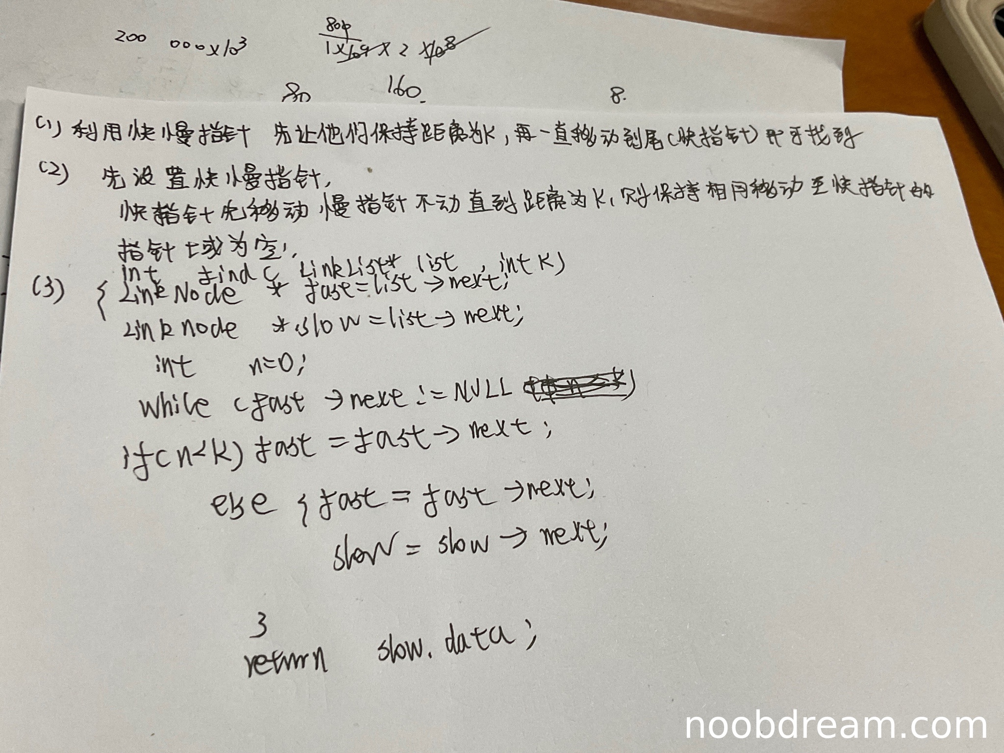 ,这会导致快指针停在最后一个节点而不是NULL,导致慢指针位置错误