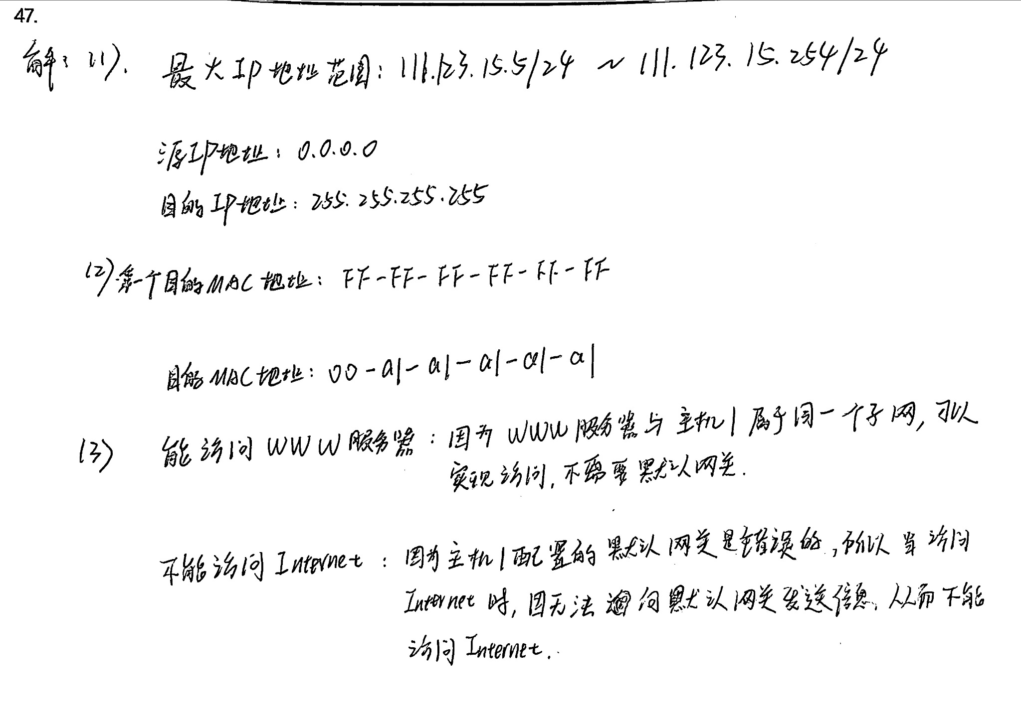 学生答案中第一个以太网帧目的MAC地址(FF-FF-FF-FF-FF-FF)和封装IP分组的以太网帧目的MAC地址(00-a1-a1-a1-a1-a1)均正确。因此得2分。