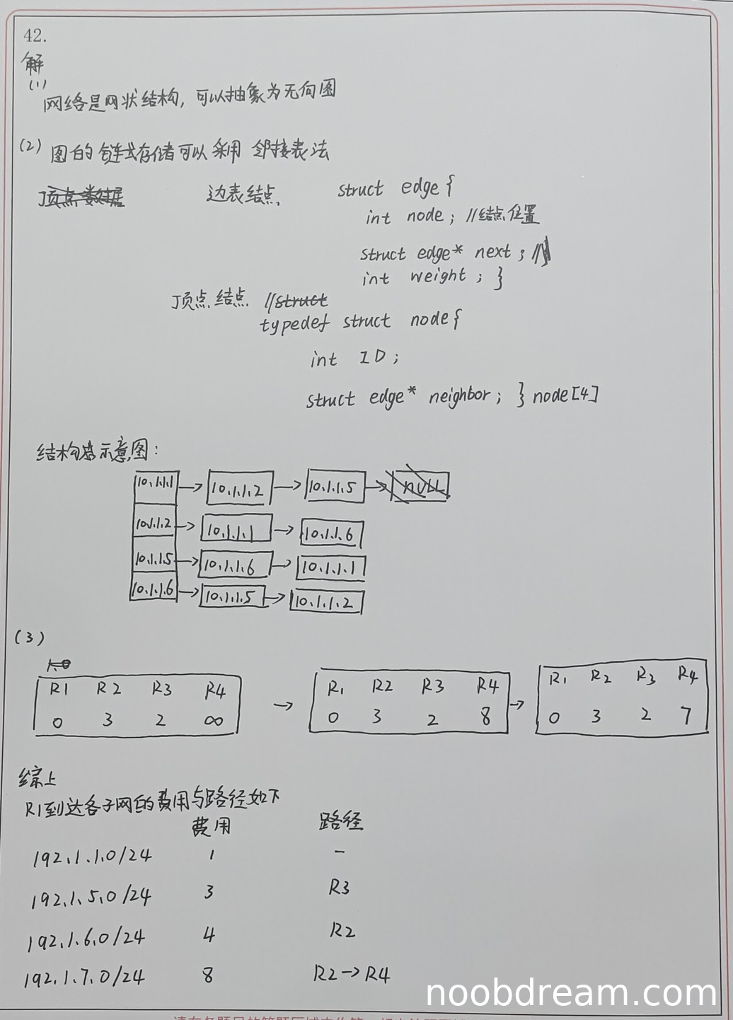 3. 结构示意图过于简单,没有体现题42表中的具体链路状态信息