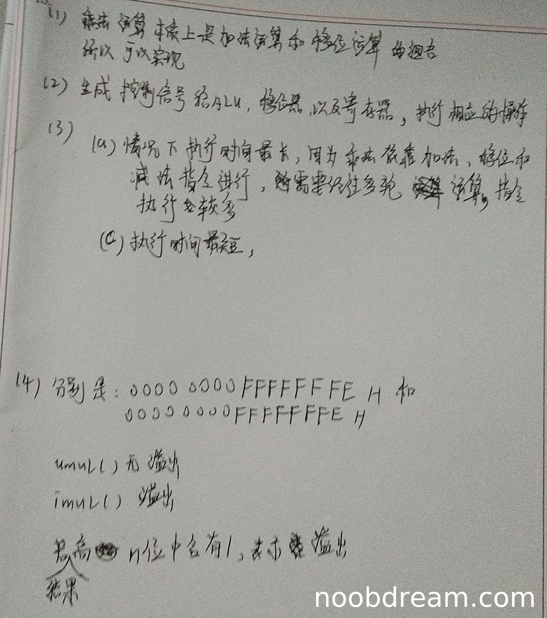 第二问:判断“umul()无溢出,imul()溢出”正确。得1分。