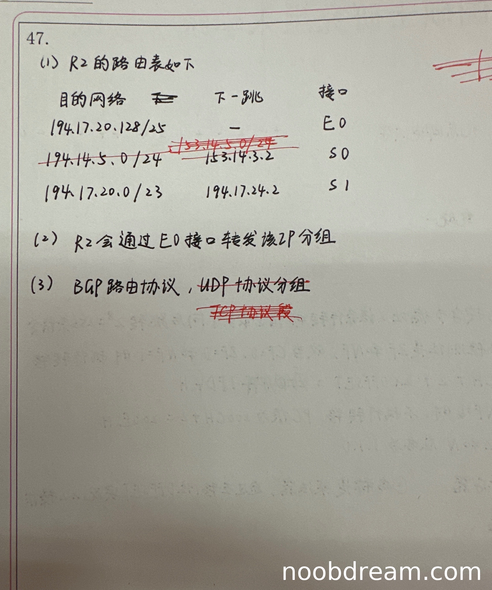 ③ 目的网络194.17.20.0/23,下一跳为194.17.24.2,接口为S1。