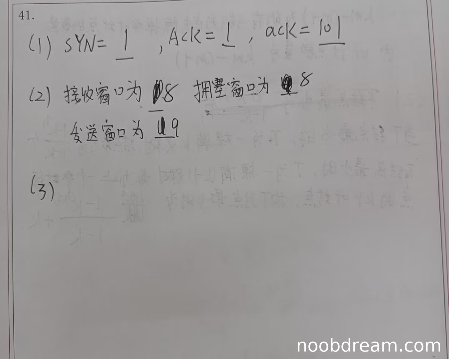 关于发送窗口:第一次识别为“9”,第二次识别为“19”。发送窗口应为min(拥塞窗口, 接收窗口) = min(9, 12) = 9 KB。第一次识别结果正确,第二次识别结果错误。但根据“只要其中有一次回答正确则不扣分”的原则,发送窗口部分不扣分。