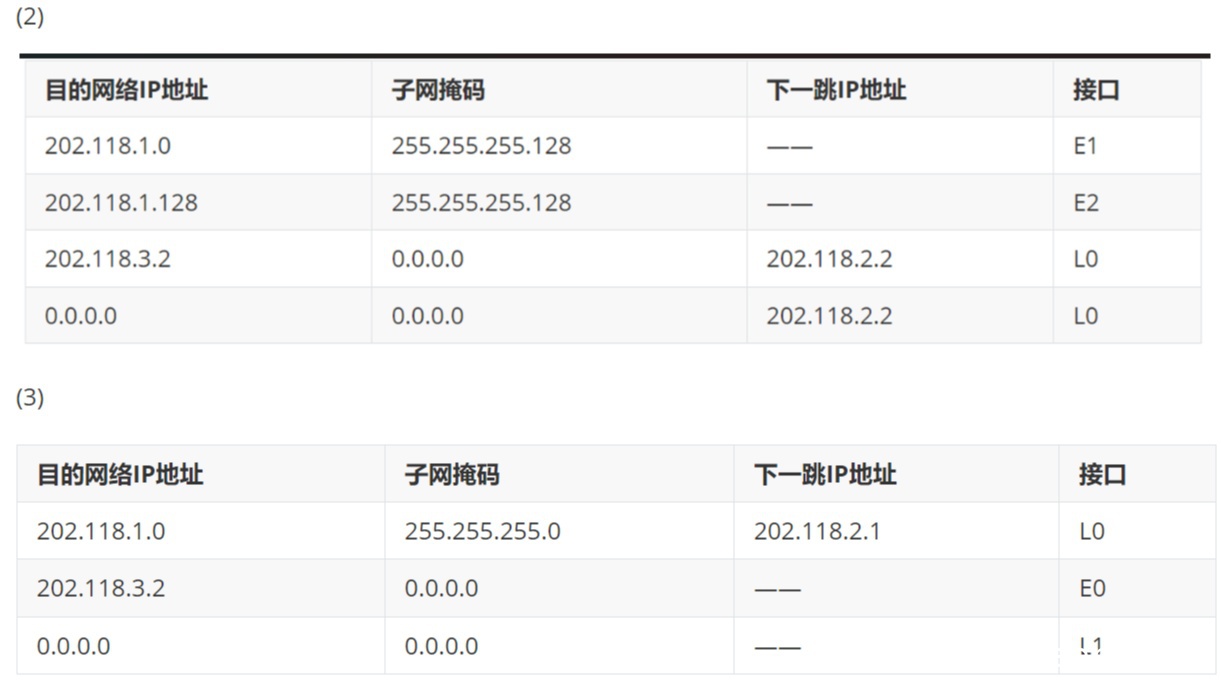 (1)因为局域网1和2的IP地址数都不少于120个,那么就至少需要7位,又因是对202.118.1.0/24进行划分,那么可以给局域网1的地址为:202.118.1.0/25,局域网2的地址为:202.118.1.128/25.