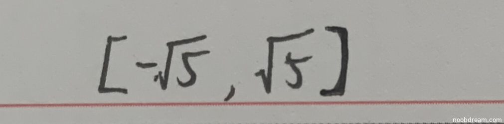 学生给出的答案是 \([-\sqrt{5}, \sqrt{5}]\),而标准答案是 \([-2,2]\)。由于 \(\sqrt{5} \approx 2.236\),这两个区间不同。题目要求负惯性指数为1,这通常涉及二次型矩阵的特征值符号或配方法分析。标准答案 \([-2,2]\) 是通过正确计算特征值或配方法得出的,而学生答案的区间边界错误,表明计算过程中存在逻辑错误,例如在配方法或特征值求解时出错。因此,该答案不正确,得0分。