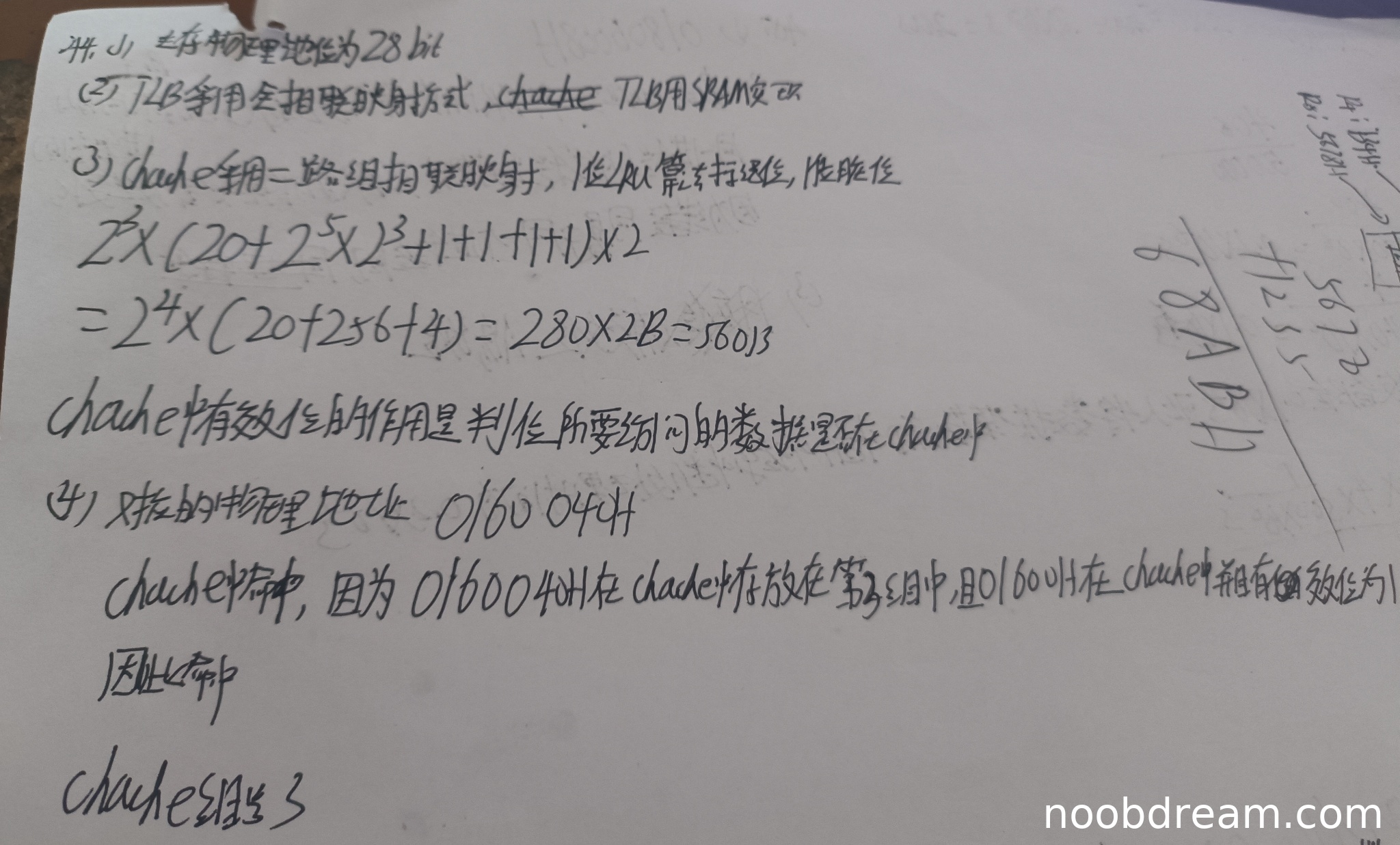 学生答案中第一次识别未回答第(1)问,第二次识别回答“主存物理地址为28 bit”,与标准答案一致。因此得2分。