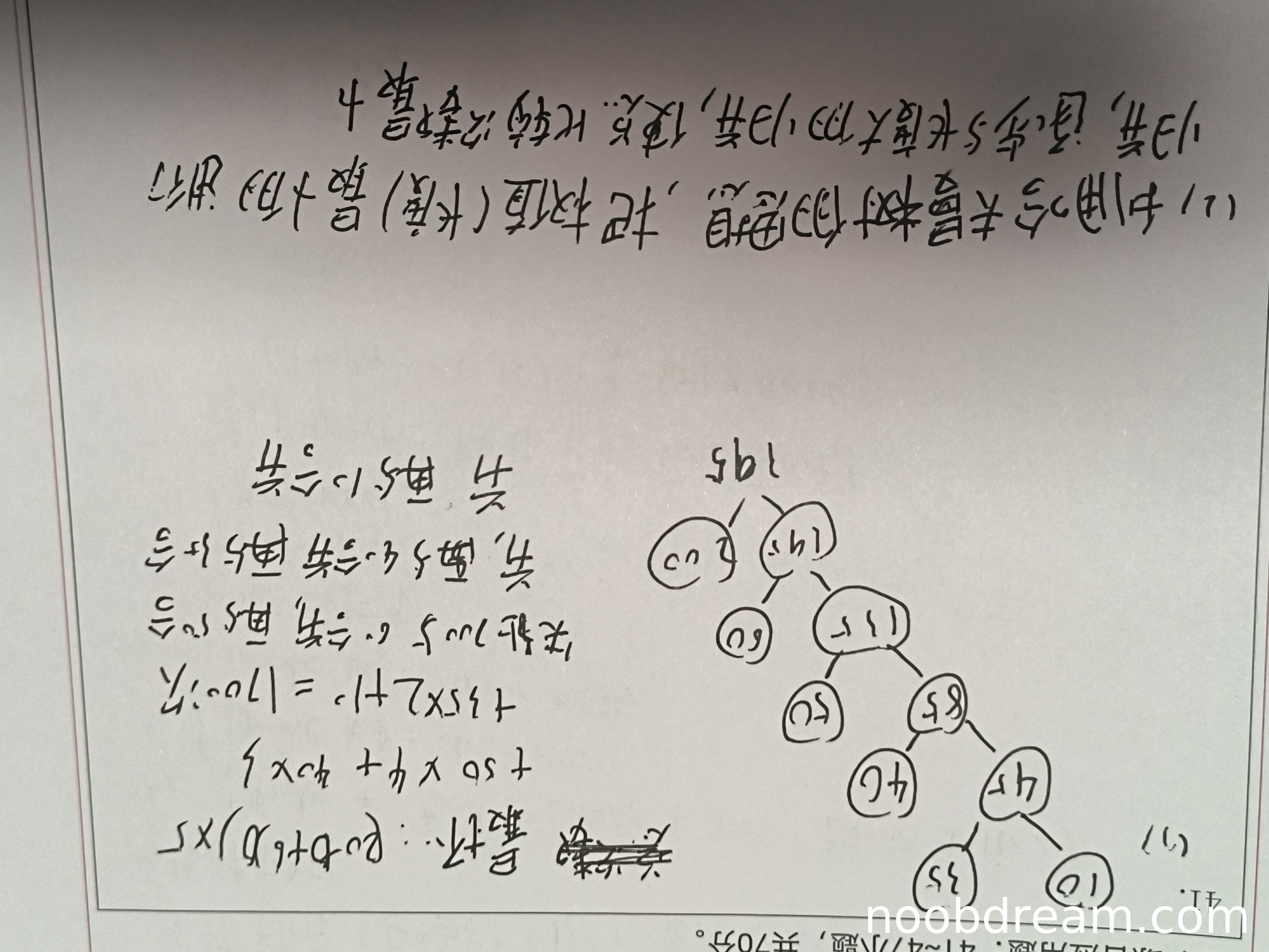 学生作答内容无法辨识,无法判断其是否描述了N个不等长升序表的合并策略及理由。根据标准答案要求,需要说明合并策略(如哈夫曼树思想)并给出理由,但学生作答内容无法理解,因此本题无法得分。