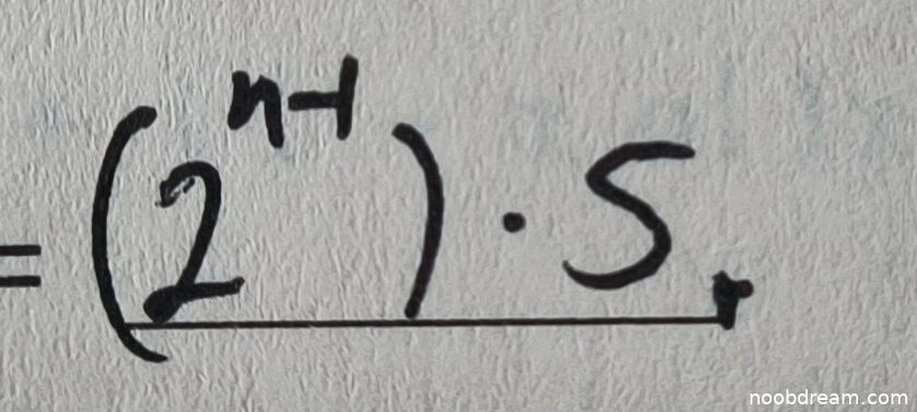 学生第一次识别结果为 \(=(2^{n - 1})\cdot S\),第二次识别结果为 \(=(2^{n - 1})\cdot5\)。标准答案为 \(\frac{5}{2} \times 2^n\)。