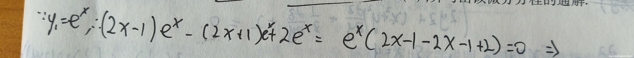 学生作答仅验证了 \( y_1(x) = e^x \) 是原微分方程的解,但题目要求的是求 \( \mu(x) \) 并写出通解。学生未进行 \( y_2(x) = \mu(x)e^x \) 的代入推导,未解出 \( \mu(x) \),也未给出通解。因此,核心问题未解答,仅完成验证步骤,属于严重不完整。根据评分标准,逻辑错误(未完成主要求解步骤)需扣分。鉴于验证步骤正确,但未涉及题目主要要求,给予基础分1分。