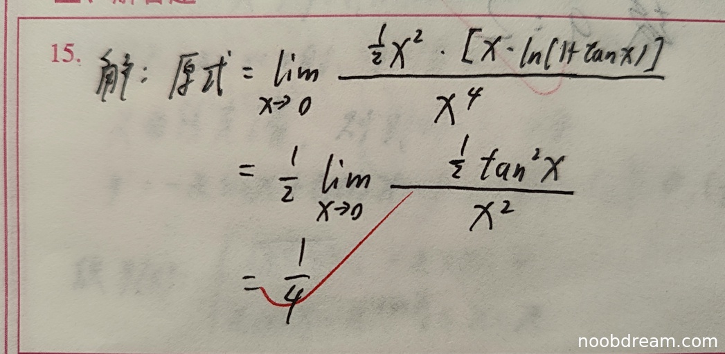 第1次识别结果中有明显错误:"x·ln(1+tanx)"应为"x-ln(1+tanx)",但根据第2次识别结果,这可能是识别错误。