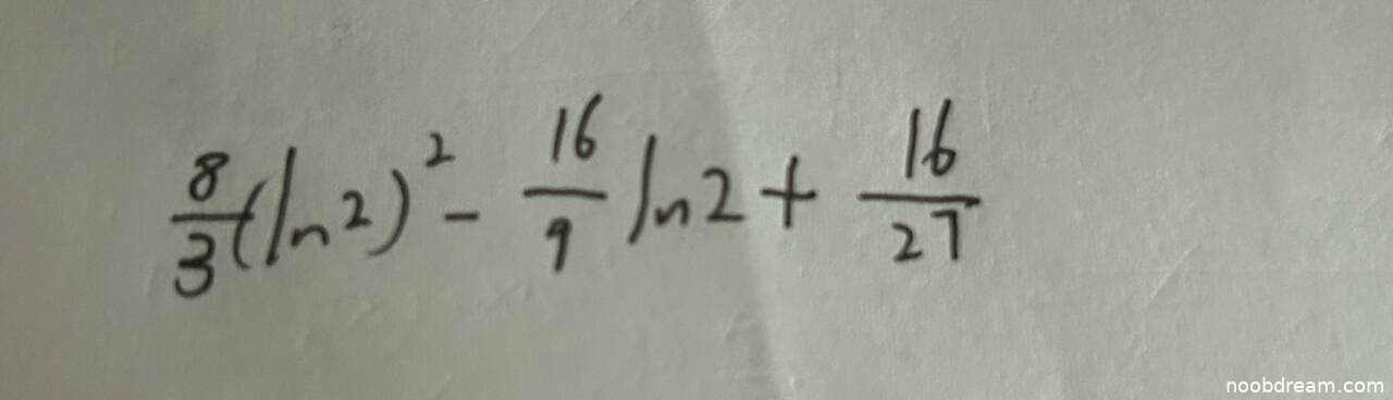 学生两次识别结果均为:\(\frac{8}{3}(\ln 2)^{2}-\frac{16}{9}\ln 2+\frac{16}{27}\)