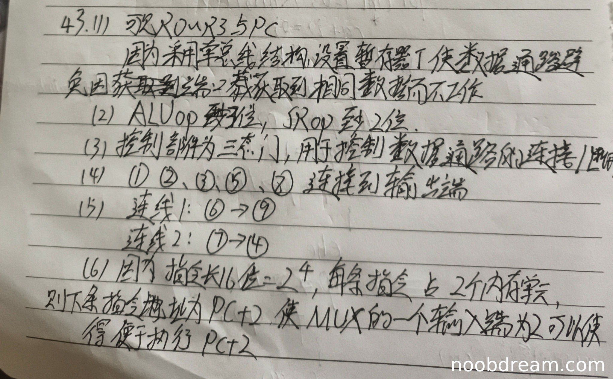第一次识别结果中,提到“可改 ROWR35PC”,疑似识别错误,但第二次识别结果明确写出“可观R0、R3与PC”,其中R0、R3是通用寄存器的一部分,但未完整列出R0~R3,且PC正确;关于暂存器T的作用,两次识别结果均正确说明其避免数据通路因获取相同数据而不工作。因此,程序员可见寄存器部分回答不完整,暂存器T作用回答正确。扣1分。得2分。