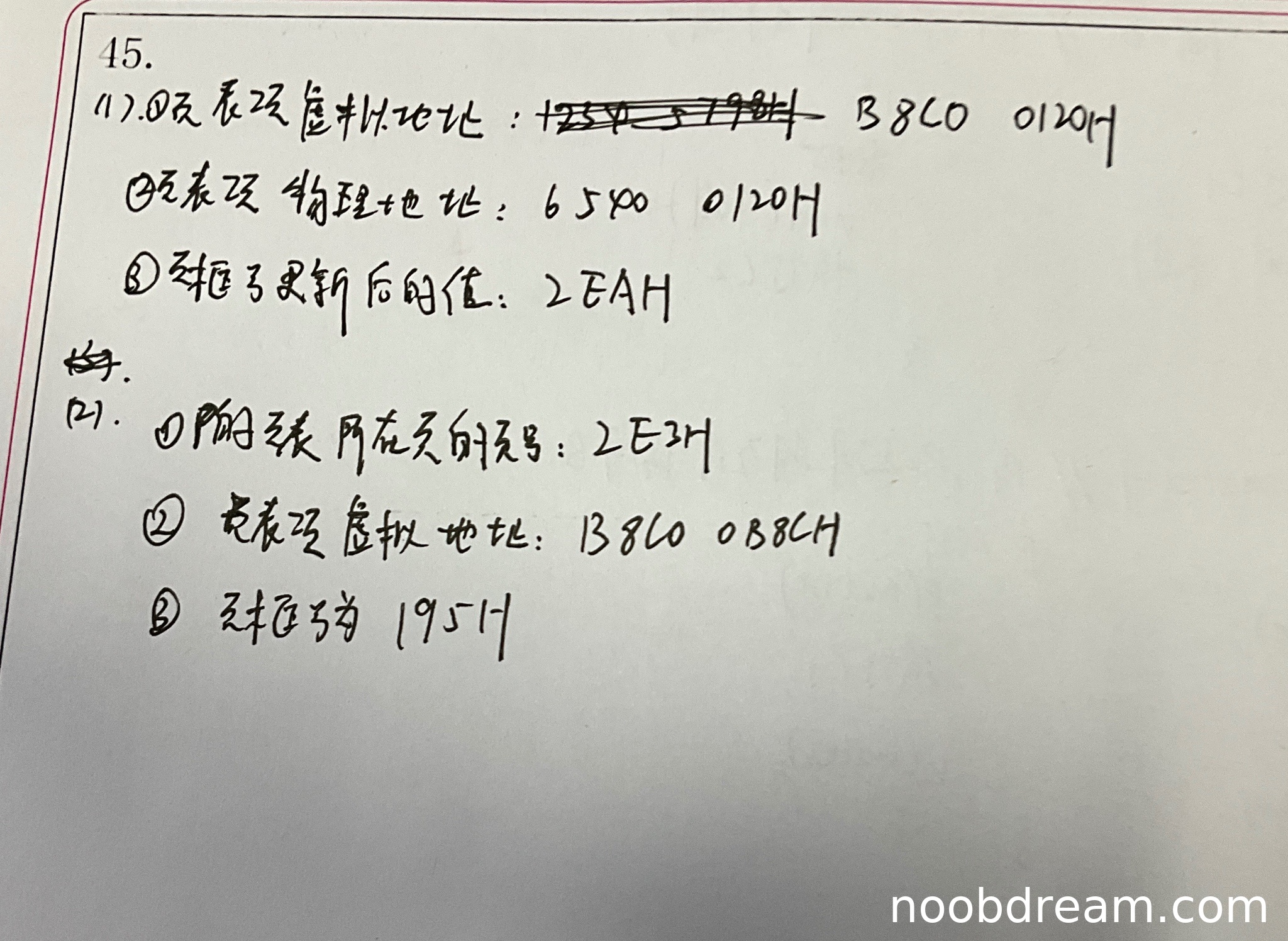 - ②页表项物理地址:6580 0120H,标准答案为6540 0120H,存在计算错误,应扣1分。