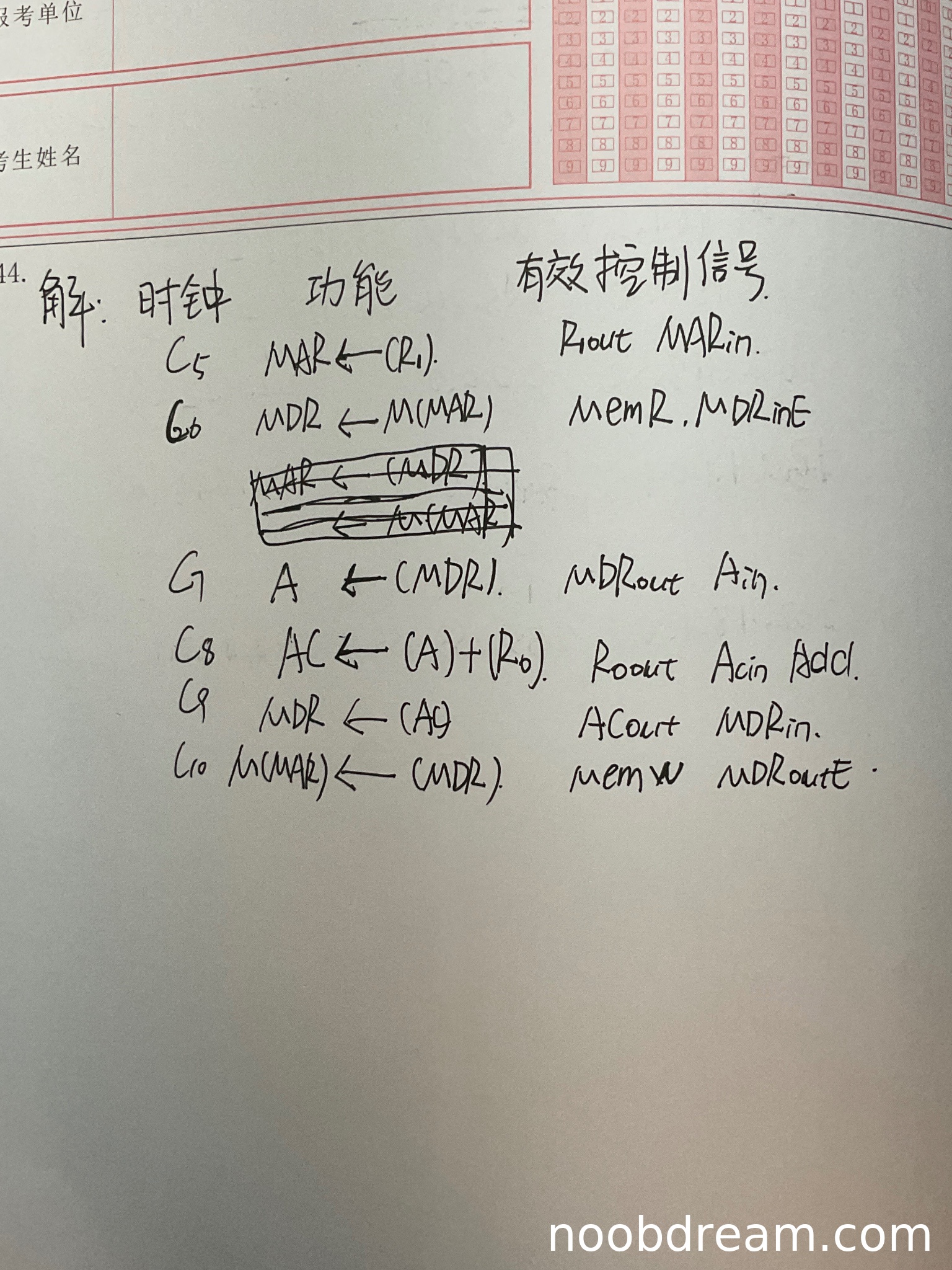 - C7节拍中,功能描述"MDR1"应为"MDR",控制信号正确,判断为识别误写,不扣分。