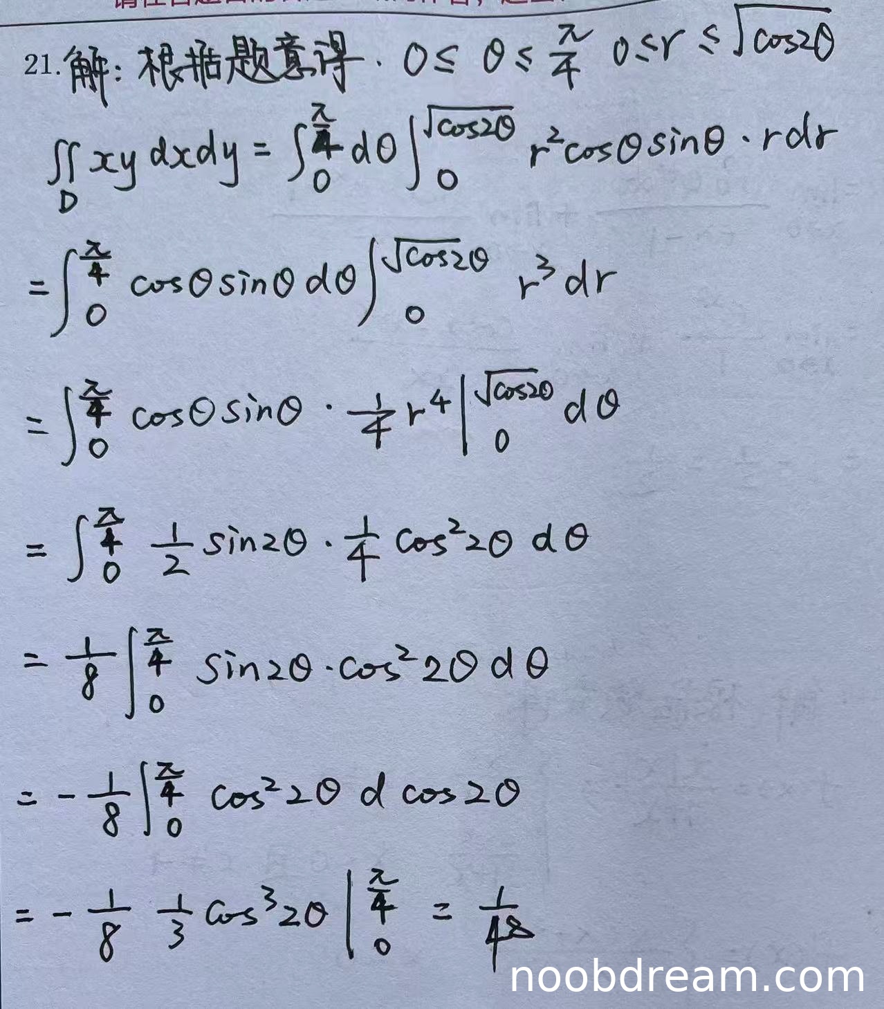 - 积分过程正确:从极坐标形式到最终结果计算无误,与标准答案一致。
