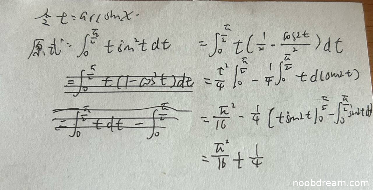 - 积分表达式:\( \int_{0}^{\frac{\pi}{2}} t \sin^2 t \, dt \) 正确。