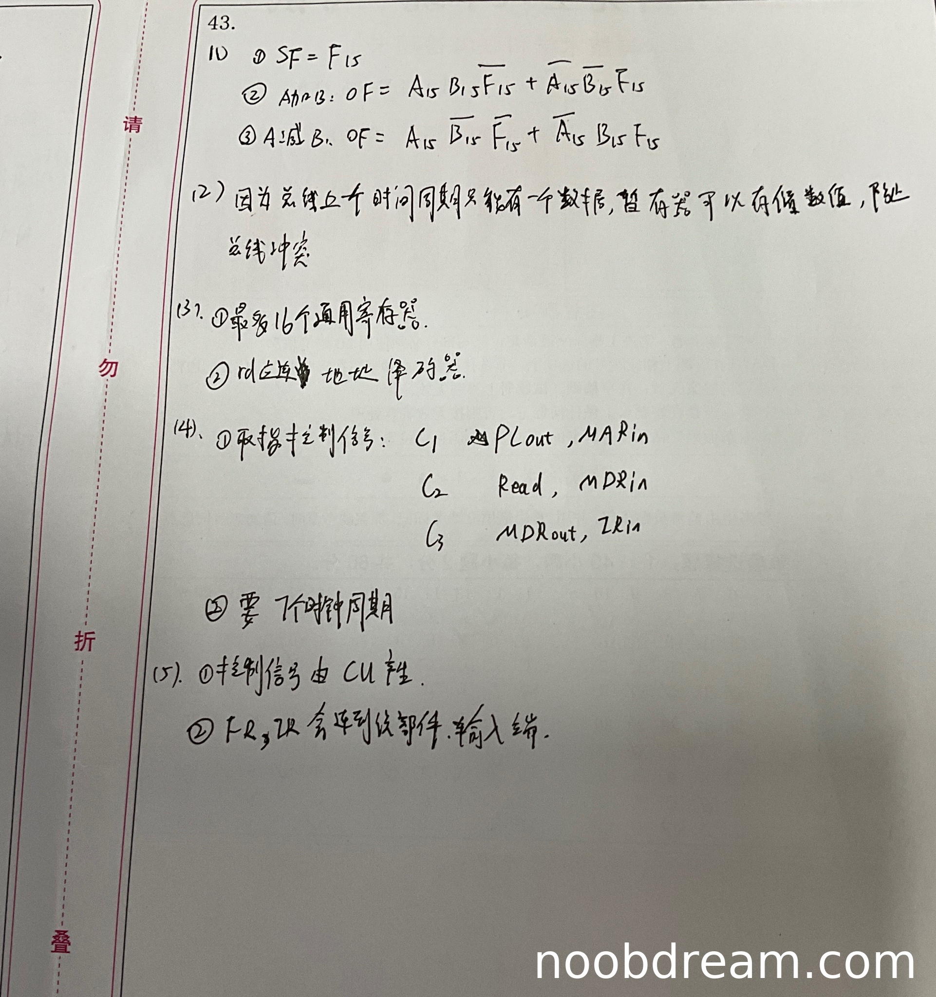 第二问:学生答案“用5位单地址指令”不清晰,但标准答案为rs和rd来自IR,学生未明确回答,扣1分。