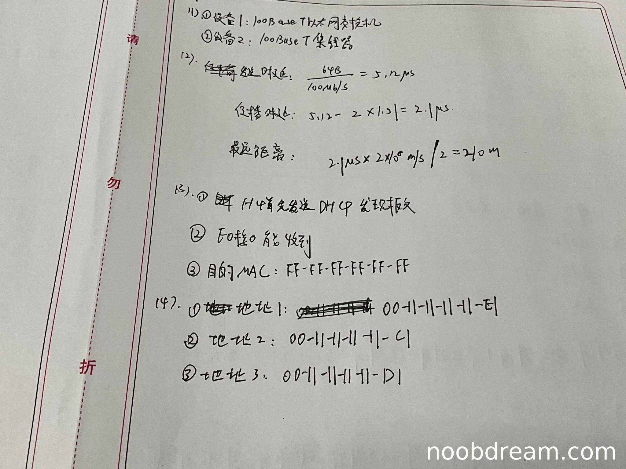 学生计算过程存在逻辑错误。第一次识别中误将传输时延单位写为ms(应为µs),但最终结果210m正确;第二次识别中单位正确,但公式"传播时延:5.12 - 2×1.51 = 2.1µs"错误,标准答案中额外延迟只计算一次而非两次。由于最终结果正确,且可能是计算过程表述不清,根据"误写不扣分"原则,给1分。