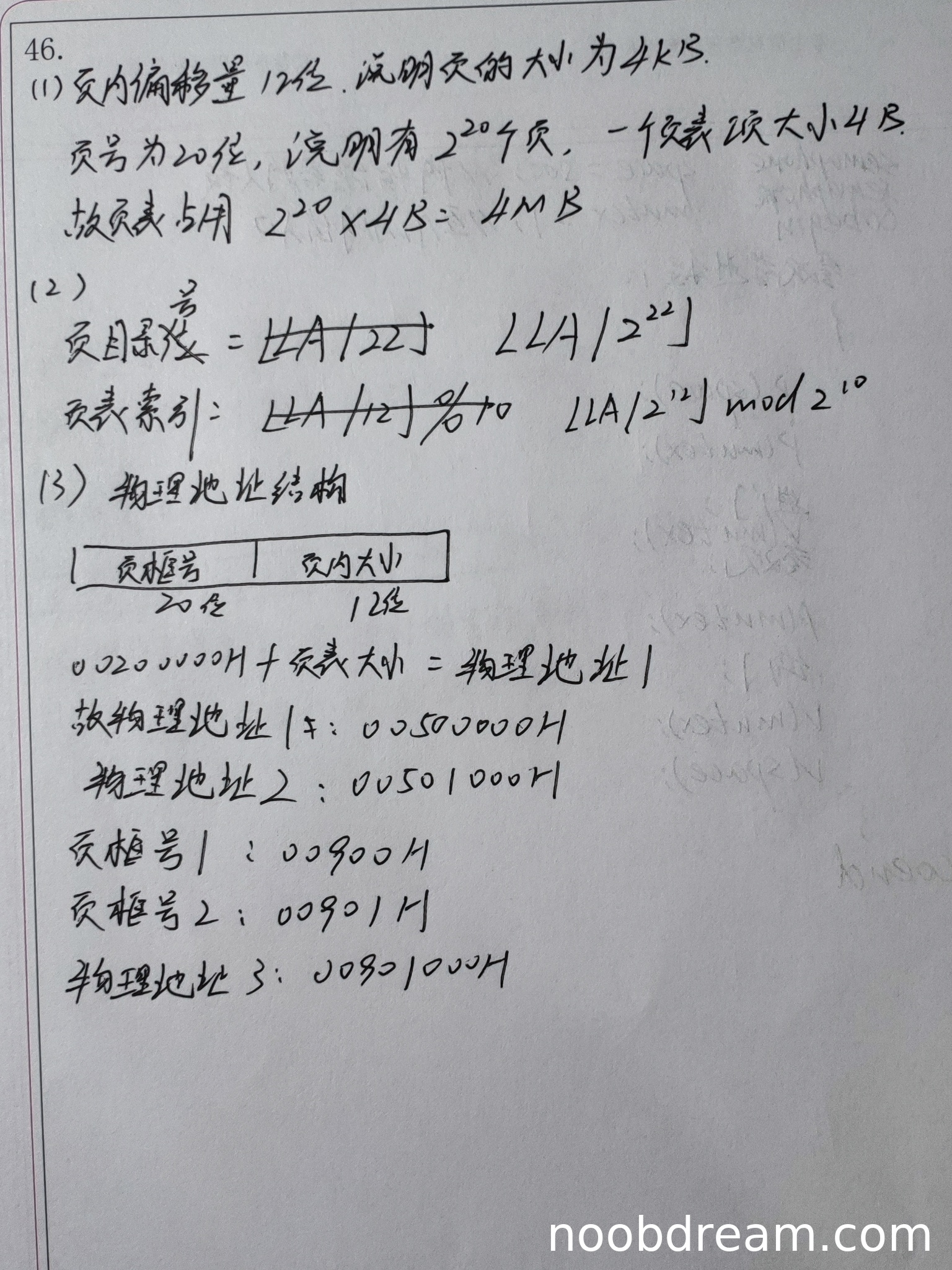 学生正确计算出页大小为4KB(1分),并正确计算出页表最大占用4MB(2分)。答案与标准答案一致,得3分。