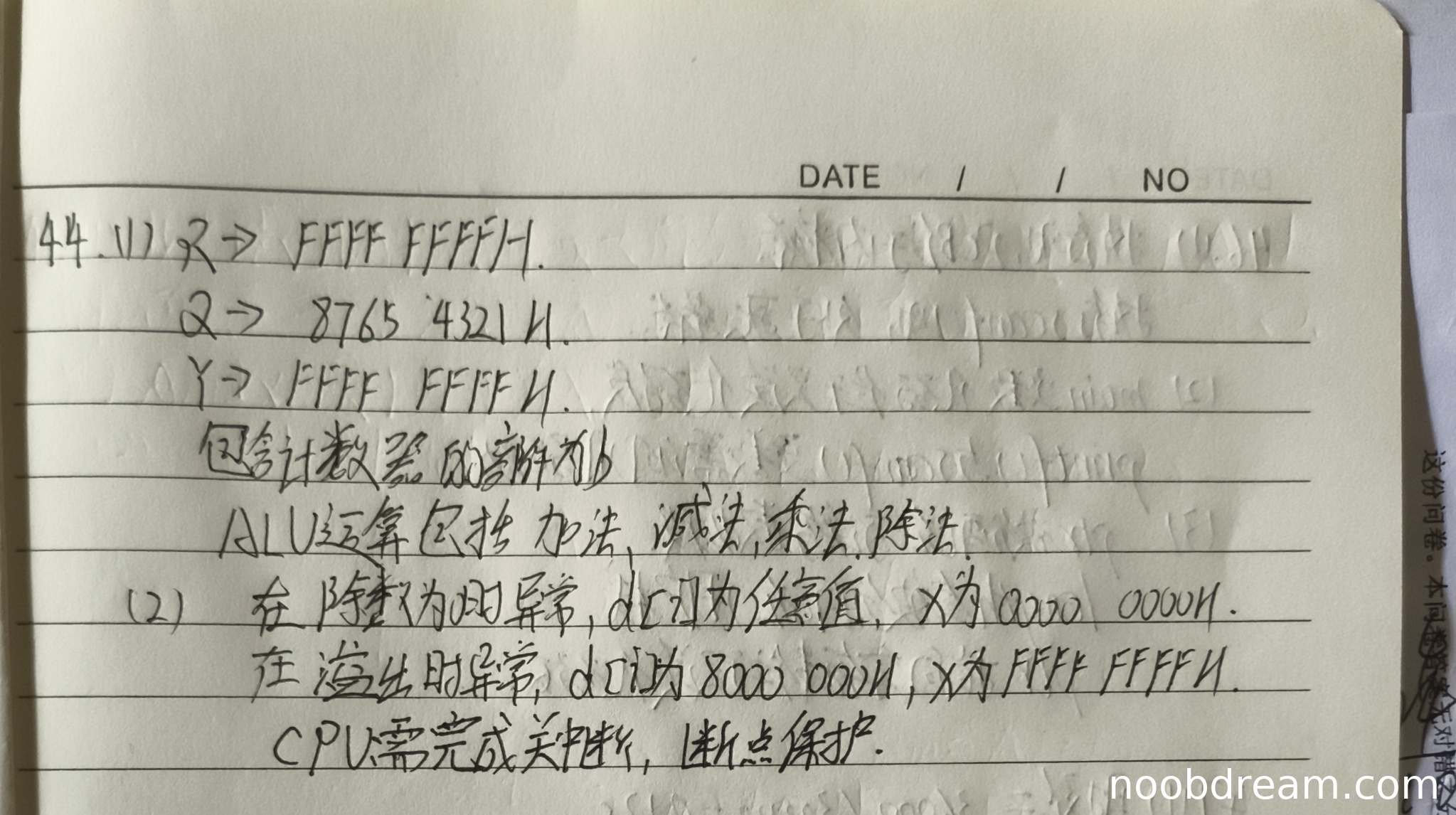 - ALU运算类型:学生回答包括加法、减法、乘法、除法,但标准答案仅包含加法和减法。学生多写了乘法和除法,属于逻辑错误,但根据禁止扣分规则,多余信息错误不扣分。