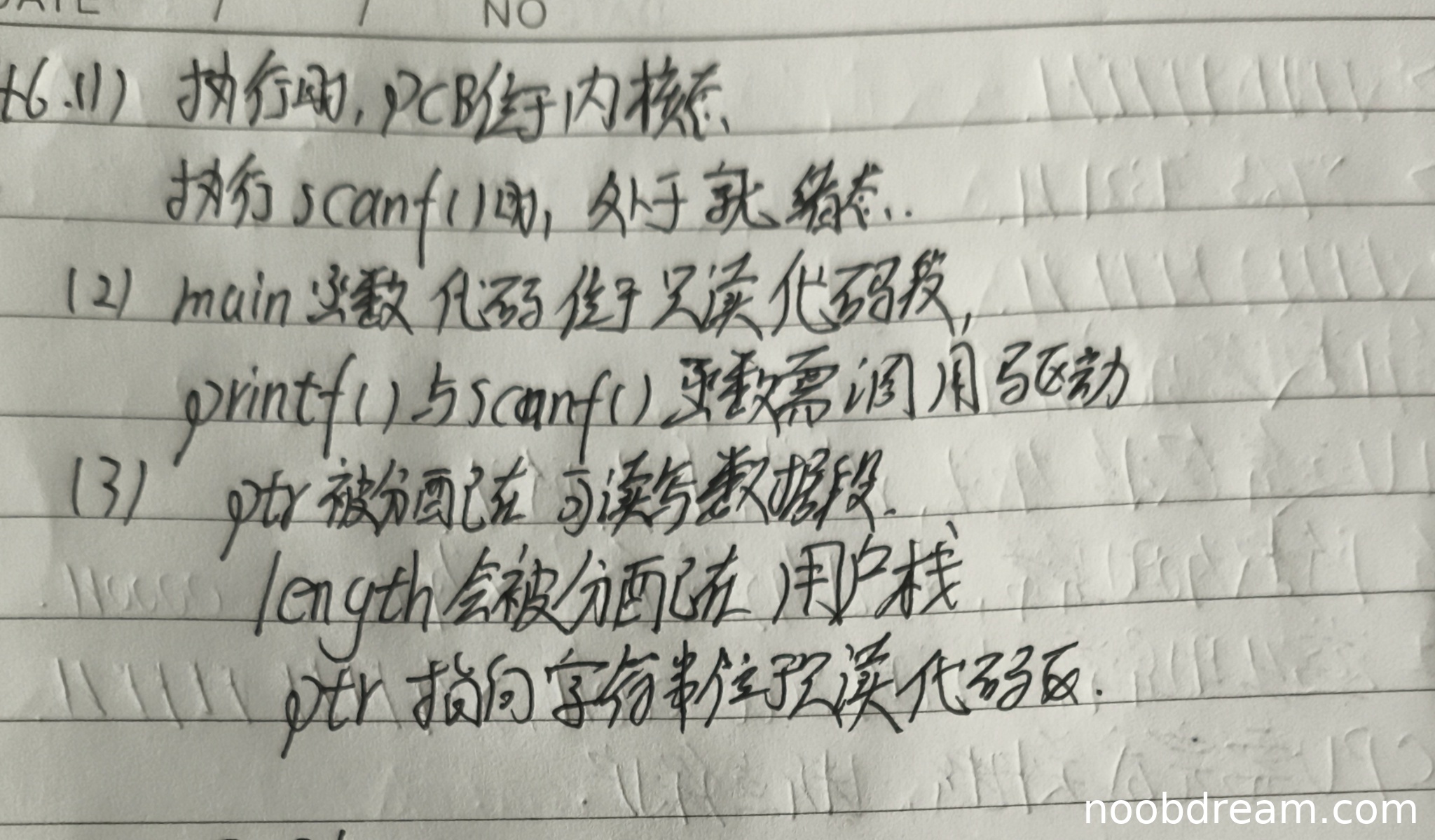 学生正确指出ptr在可读写数据段,length在用户栈,但错误认为ptr指向的字符串位于只读代码段。实际上通过malloc分配的字符串应该在运行时堆。前两个要点各得1分,最后一个要点不得分。得2分。
