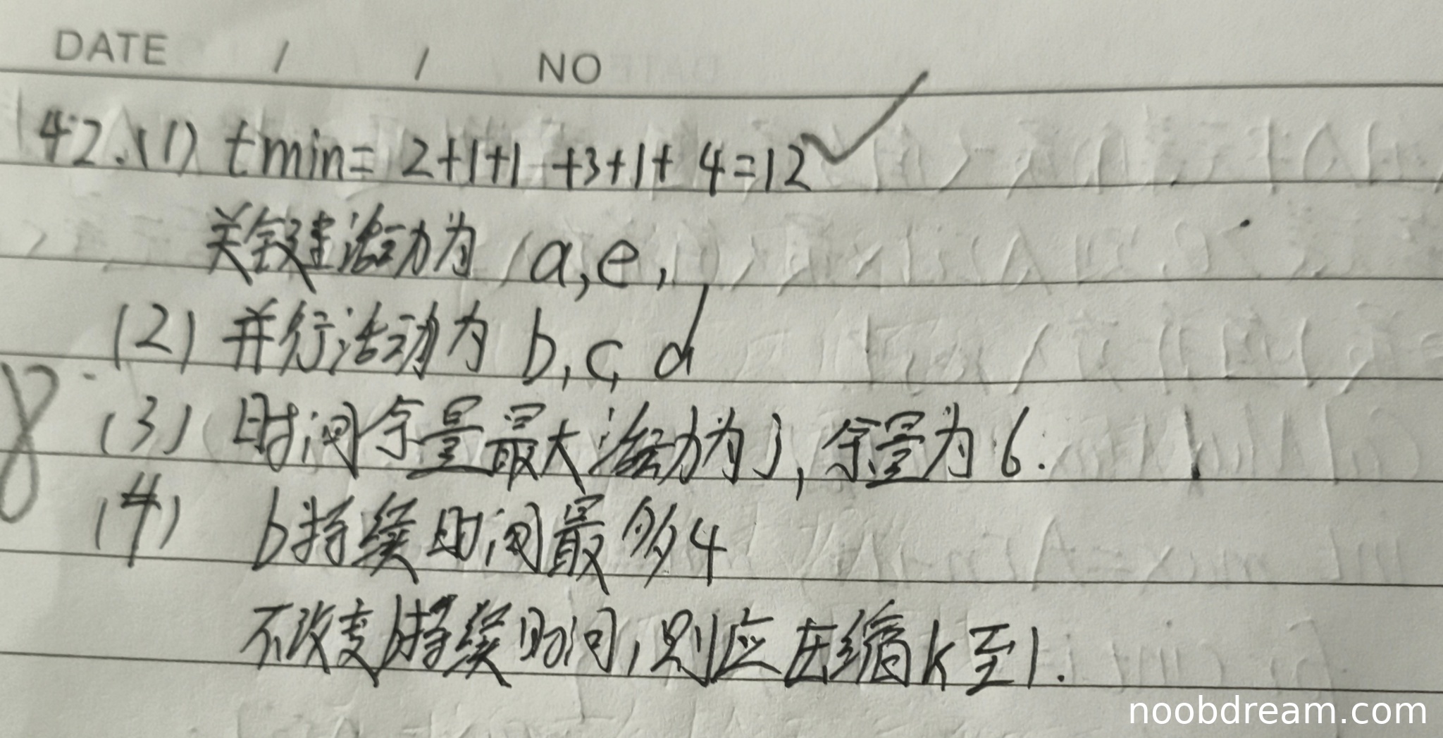 学生正确回答出与活动e同时进行的活动为b、c、d,得2分。
