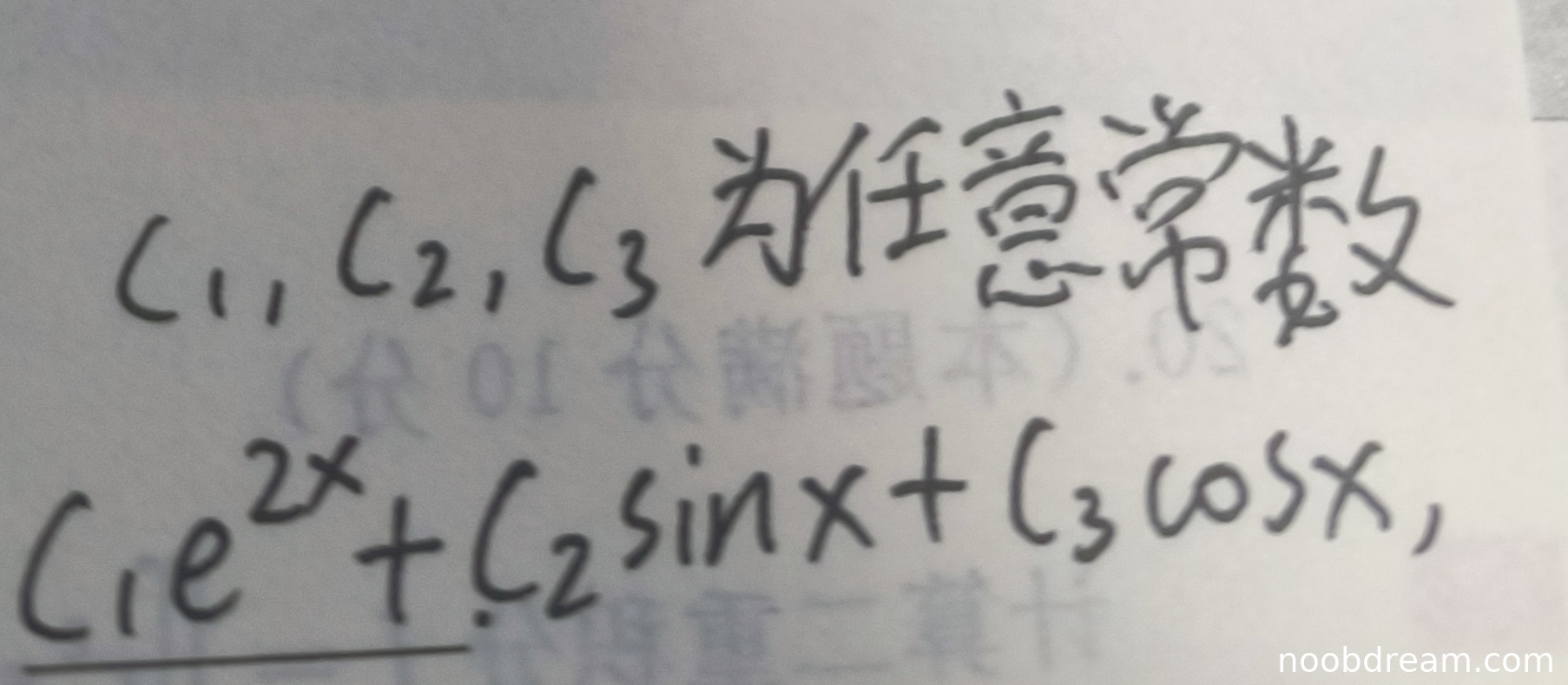 学生两次识别结果均为:\(C_1e^{2x}+C_2\sin x + C_3\cos x\)(常数符号大小写差异不影响)。