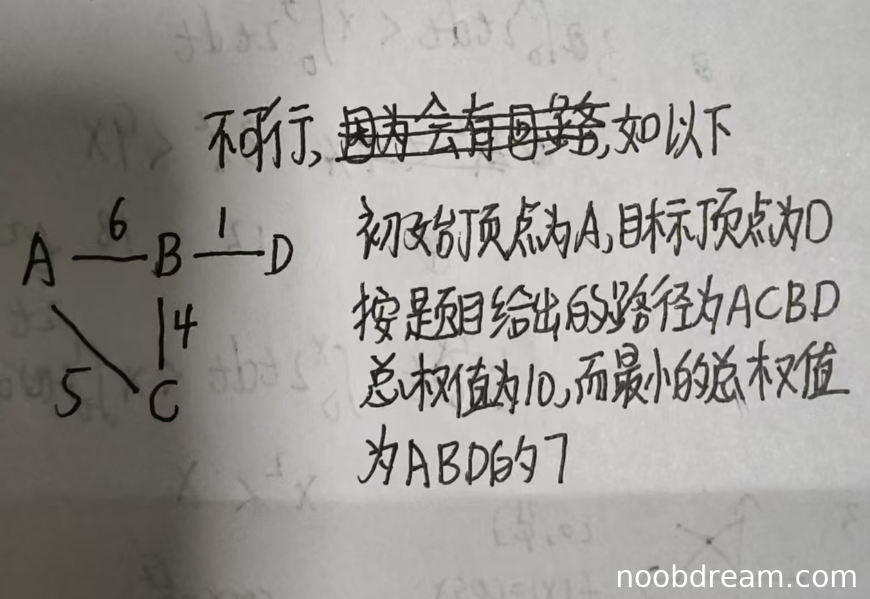 1. 学生举例中的路径ACBD总权值为10,ABD总权值为7,但未提供具体的图结构,无法验证其正确性