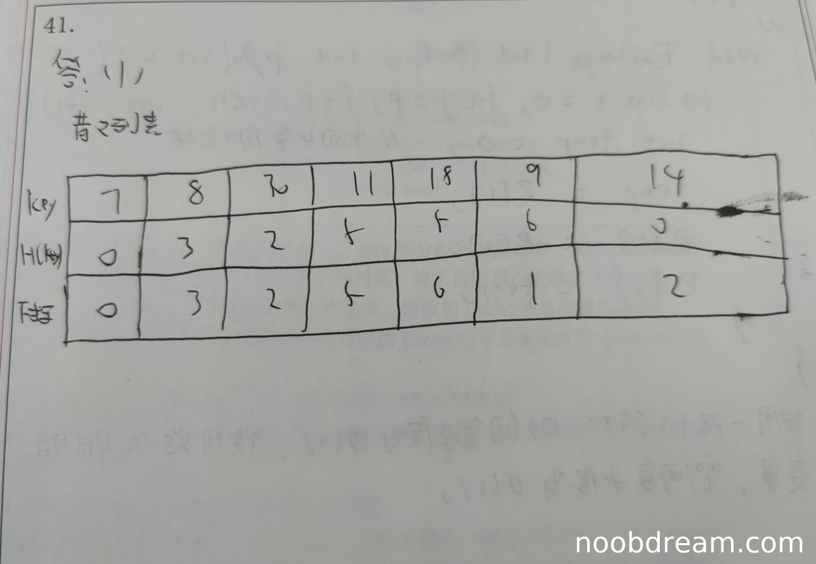 扣分:本题主要考察散列表的构造,学生答案基本错误,得0分。