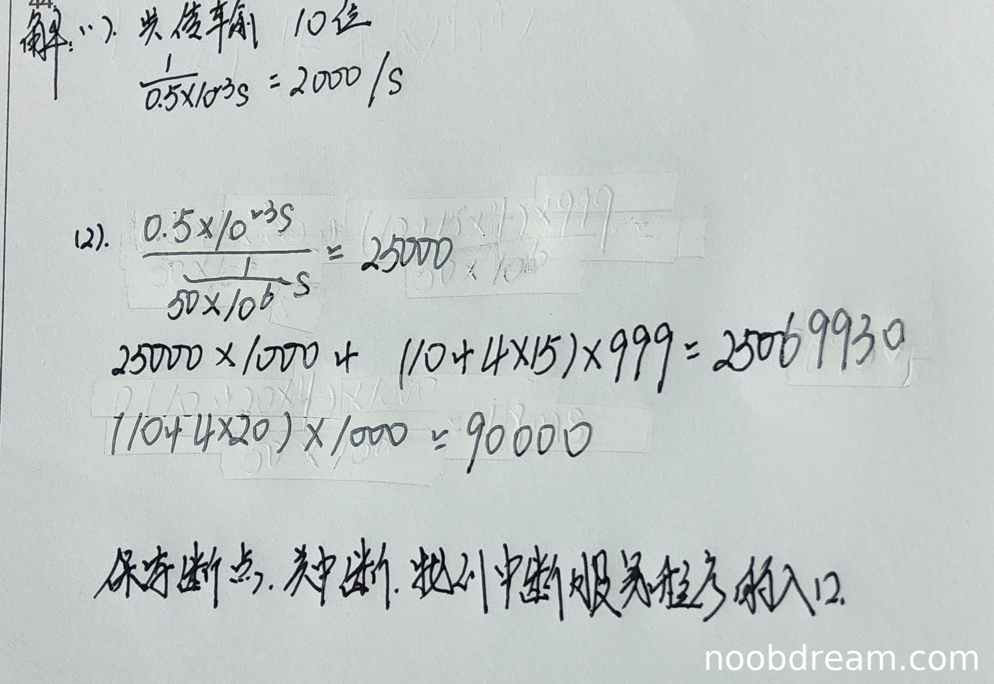 学生回答每传送一个字符需要传输10位,正确;每秒钟最多可向I/O端口送入2000个字符,正确。理由充分,计算正确。得3分。