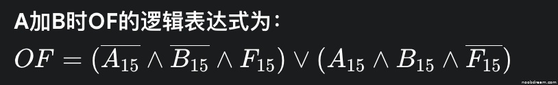 学生答案中,SF=F15正确,得1分;A加B时OF的逻辑表达式正确,得1分;但A减B时OF的逻辑表达式缺失,扣1分。因此本小题得2分。