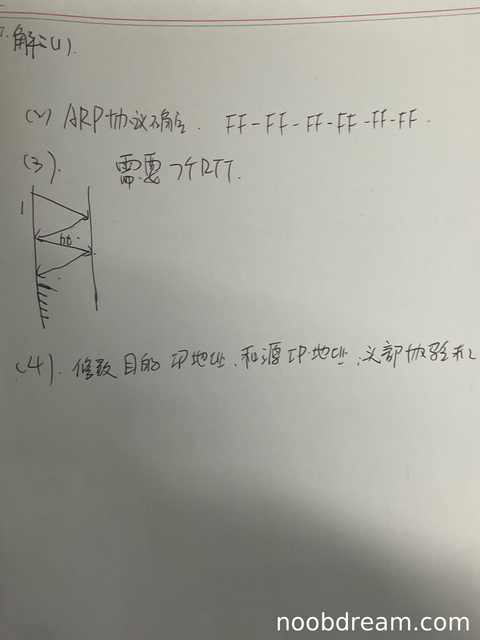 第一问:学生回答"ARP协议广播",正确,得1分。第二问:学生回答"FF-FF-FF-FF-FF-FF",正确,得1分。本题得2分。