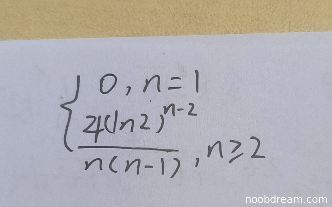 学生答案:当n=1时给出0,当n≥2时给出4(ln2)^{n-2}/[n(n-1)]