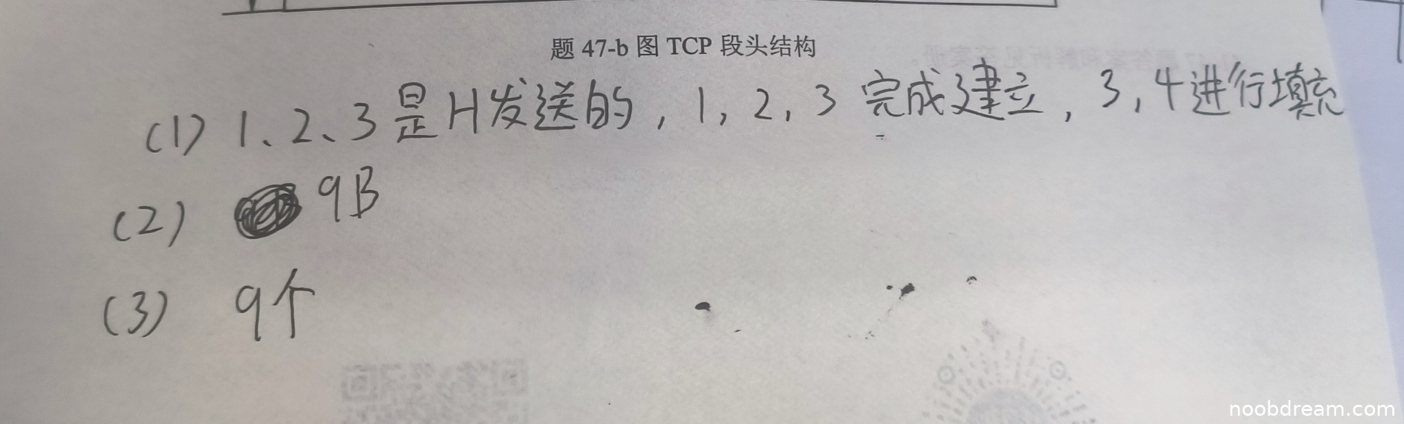 得分:TCP连接建立部分正确得1分,其余部分错误不得分。本小题满分5分,其中H发送的分组判断占3分,TCP连接建立占1分,填充判断占1分。学生仅TCP连接建立正确,得1分。