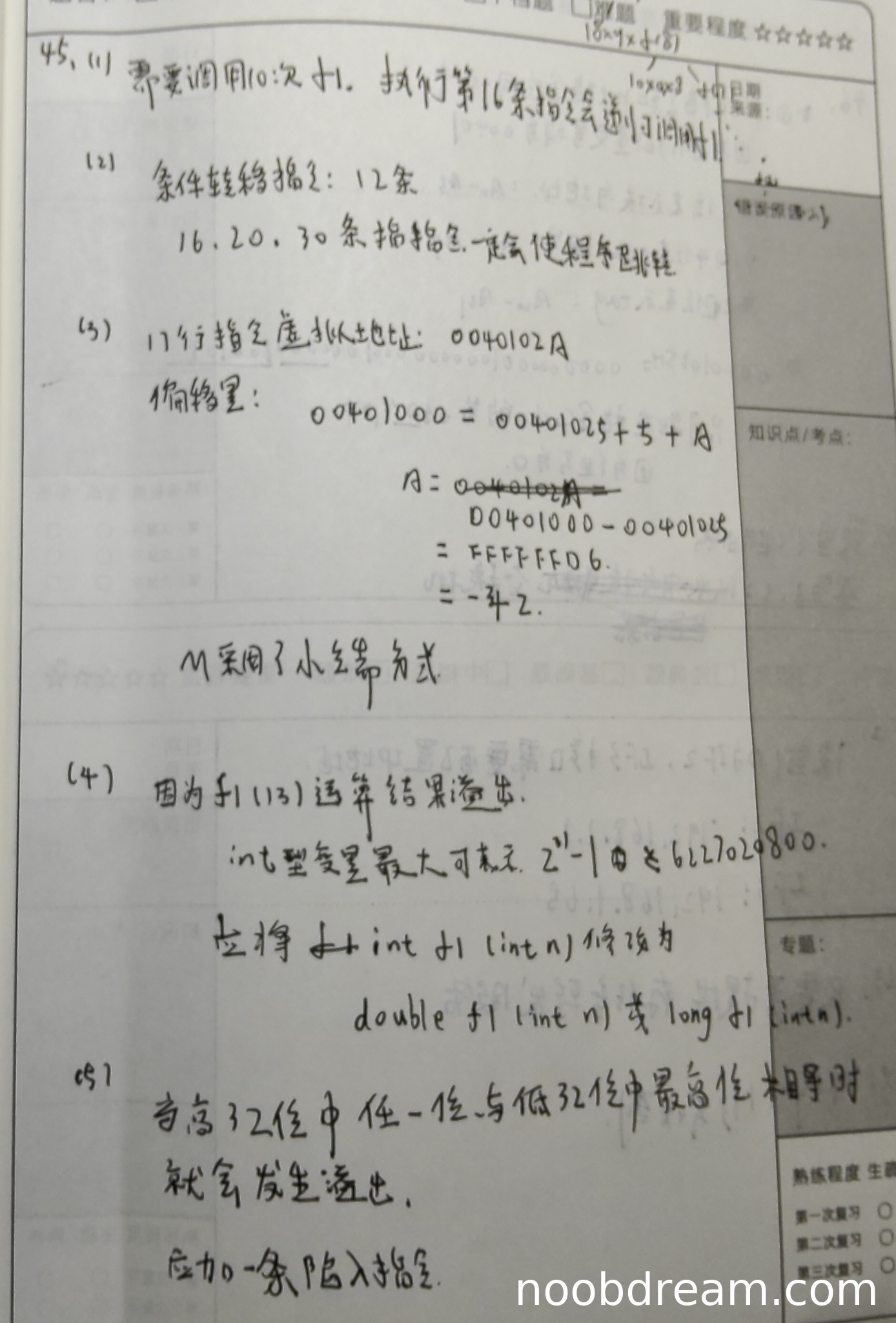 第二问:学生回答“执行第16条指令会递归调用f1”,正确,得1分。