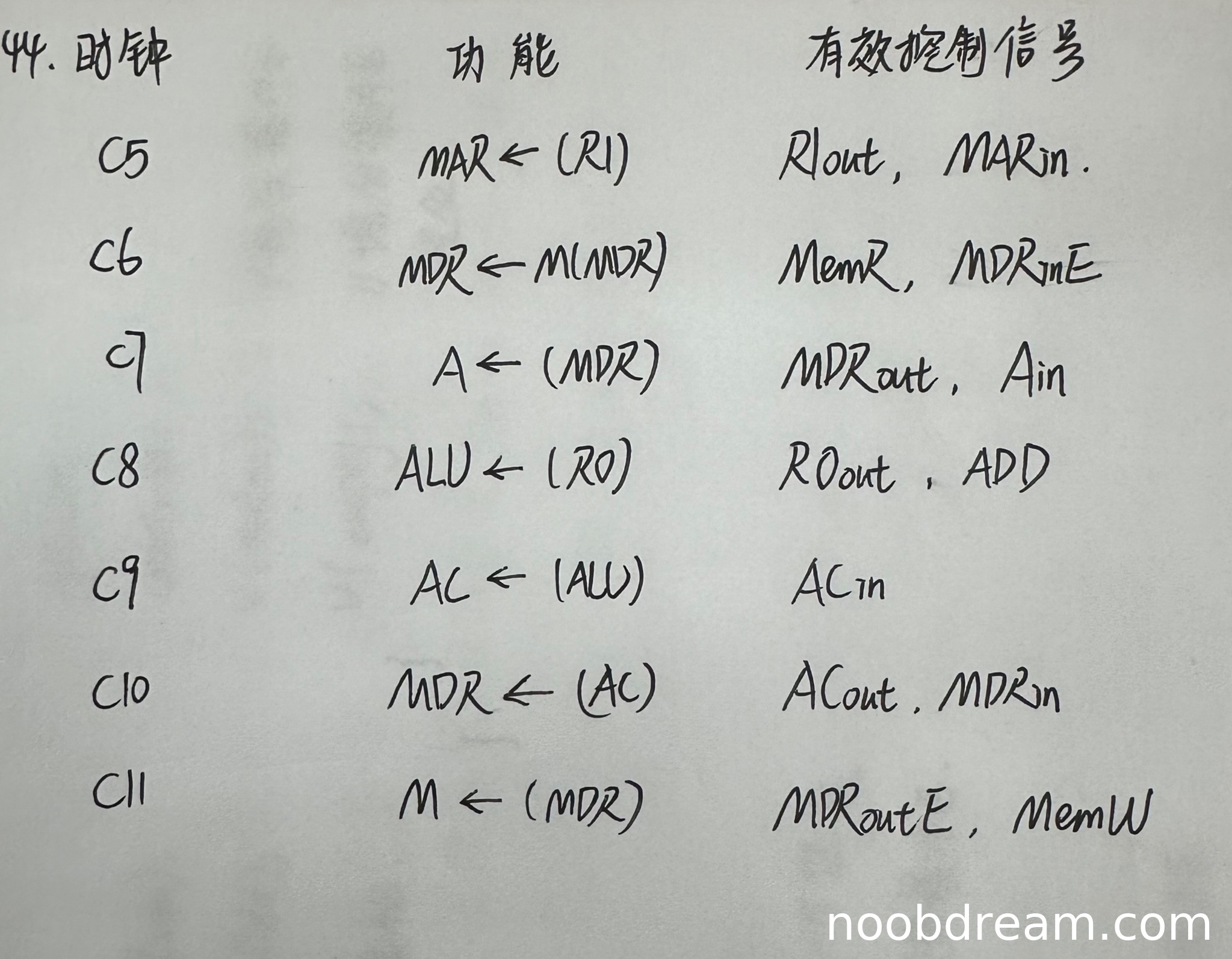 C10节拍正确:MDR←(AC),控制信号ACout、MDRin正确。